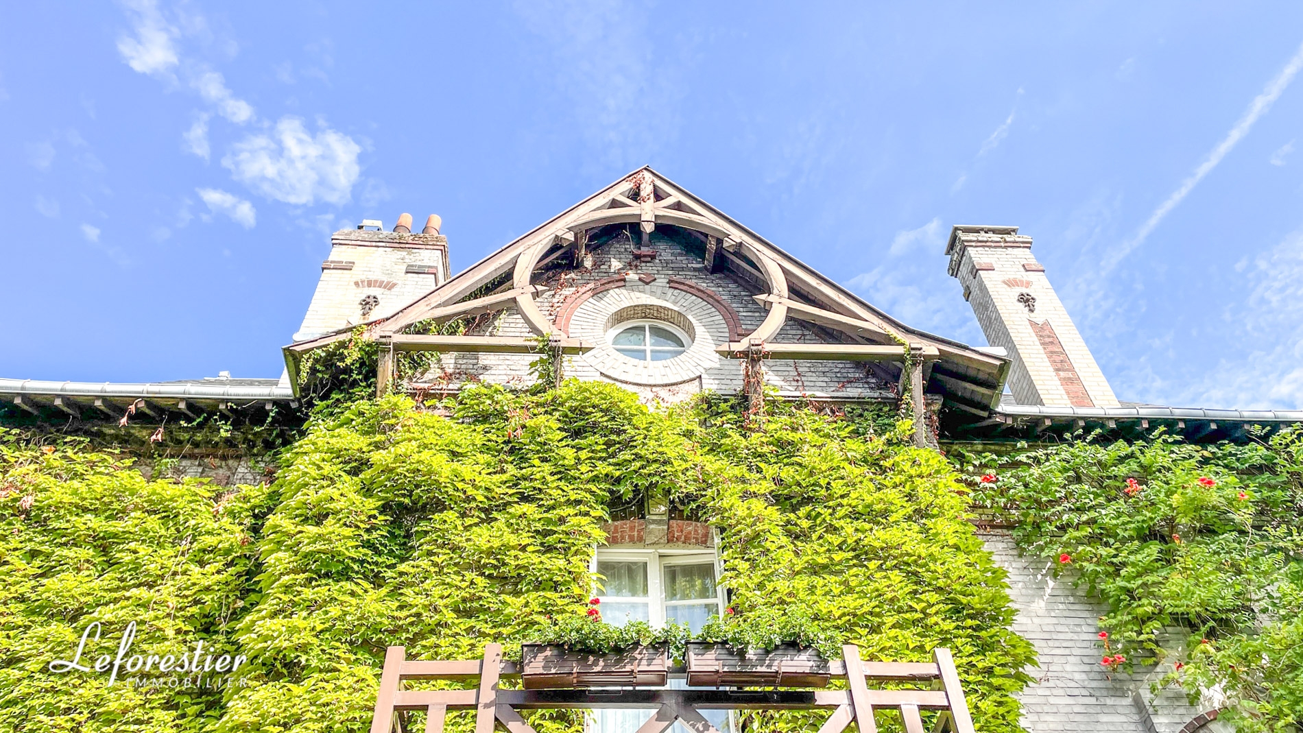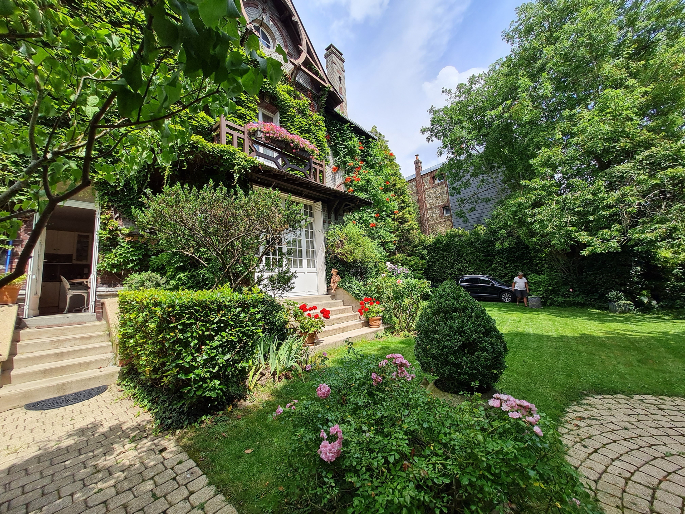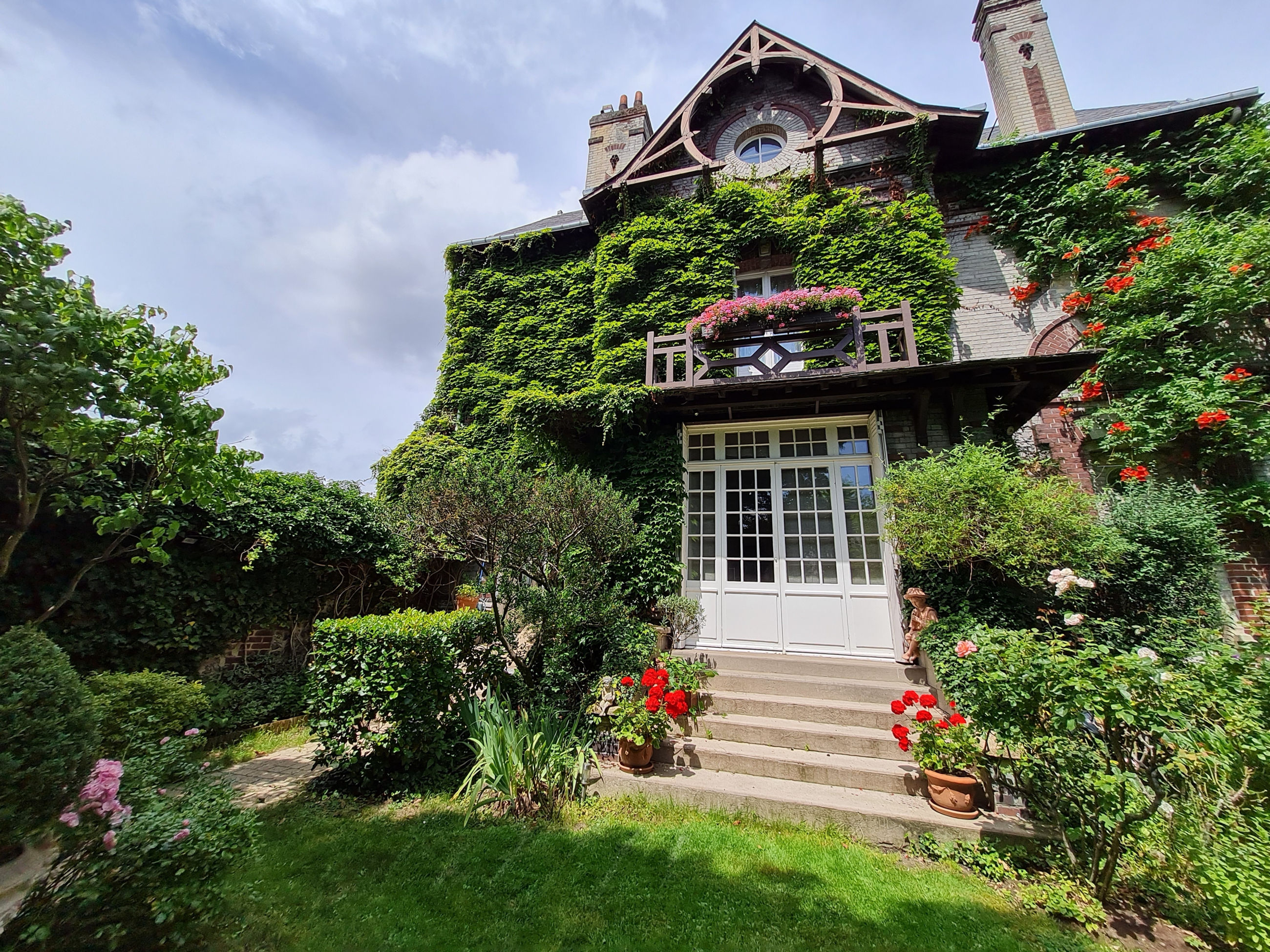 Cette maison bourgeoise est édifiée au cœur du quartier Saint-Gervais à Rouen. Située face à l’église Saint-Gervais cette belle demeure du 19ème bénéficie d’un cadre privilégié avec un beau jardin ombragé et fleuri. C’est un lieu propice à la flânerie, protégé du tumulte de la ville. Bénéficiant des rayons du soleil toute la journée, les pièces sont lumineuses grâce aux nombreuses ouvertures : Baies vitrées, bow-window, balcon, fenêtres anciennes. Les épais murs de brique et de silex sont recouverts d’une splendide vigne vierge apportant un style unique à cette maison et gardant la fraicheur toute la journée.