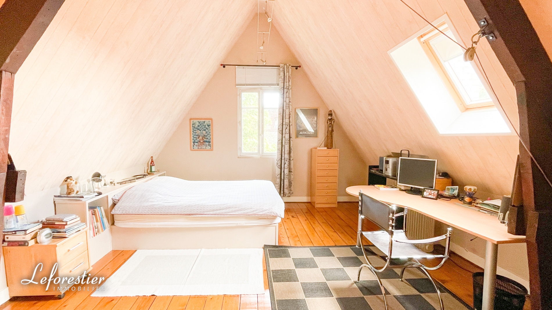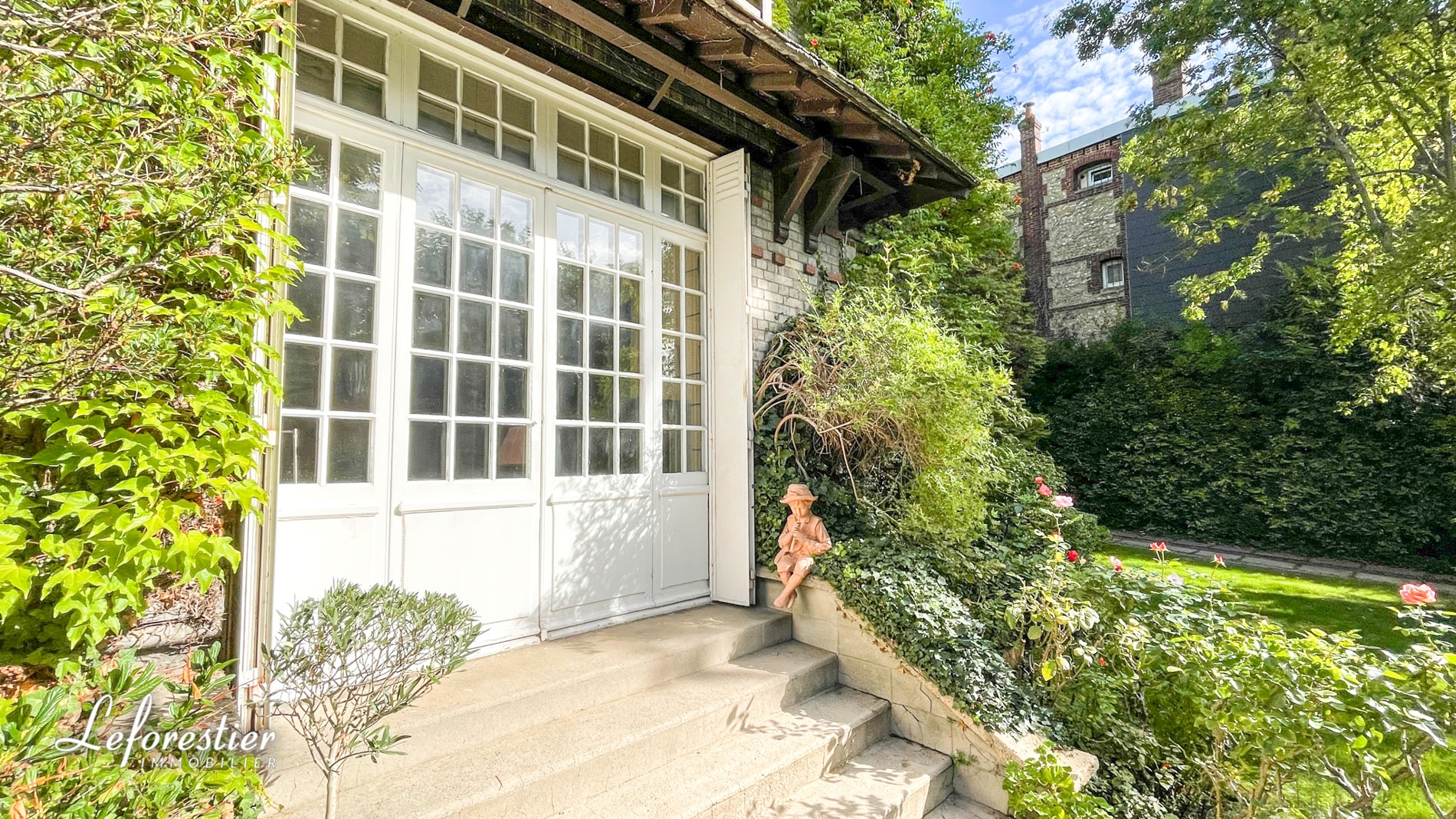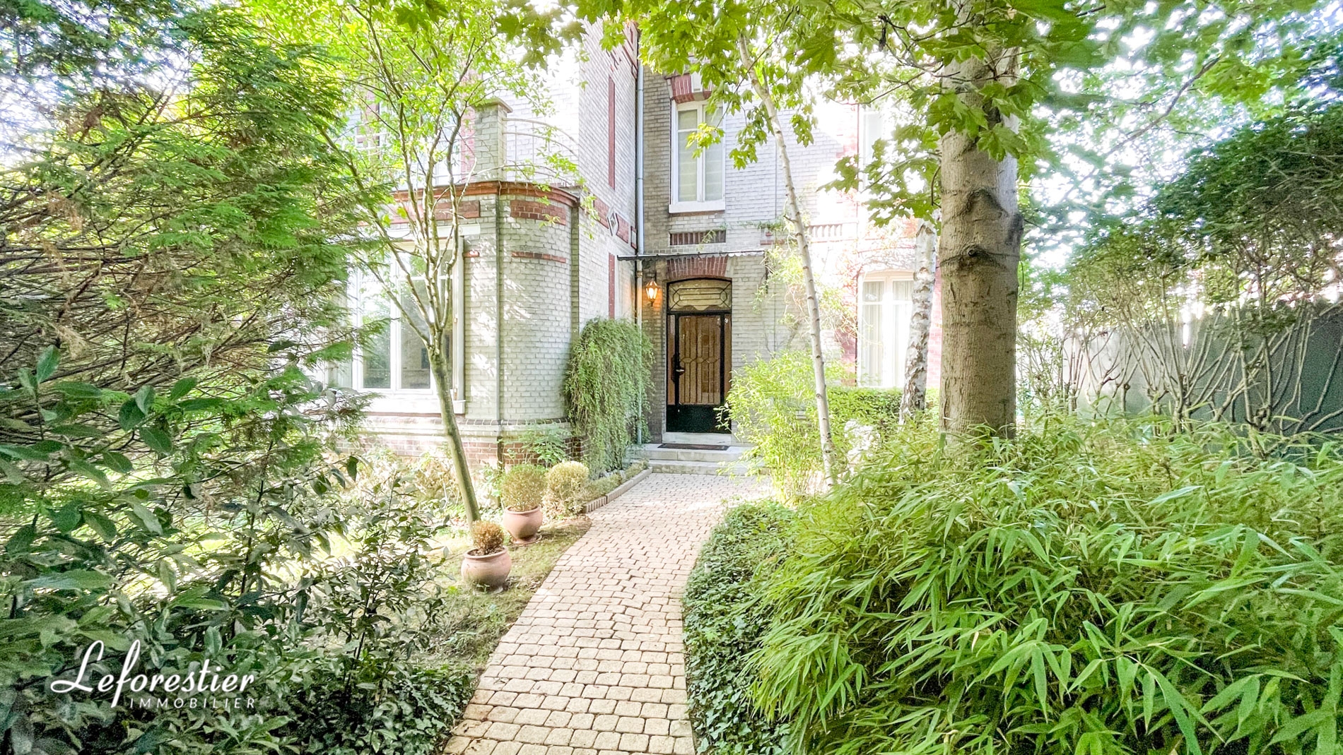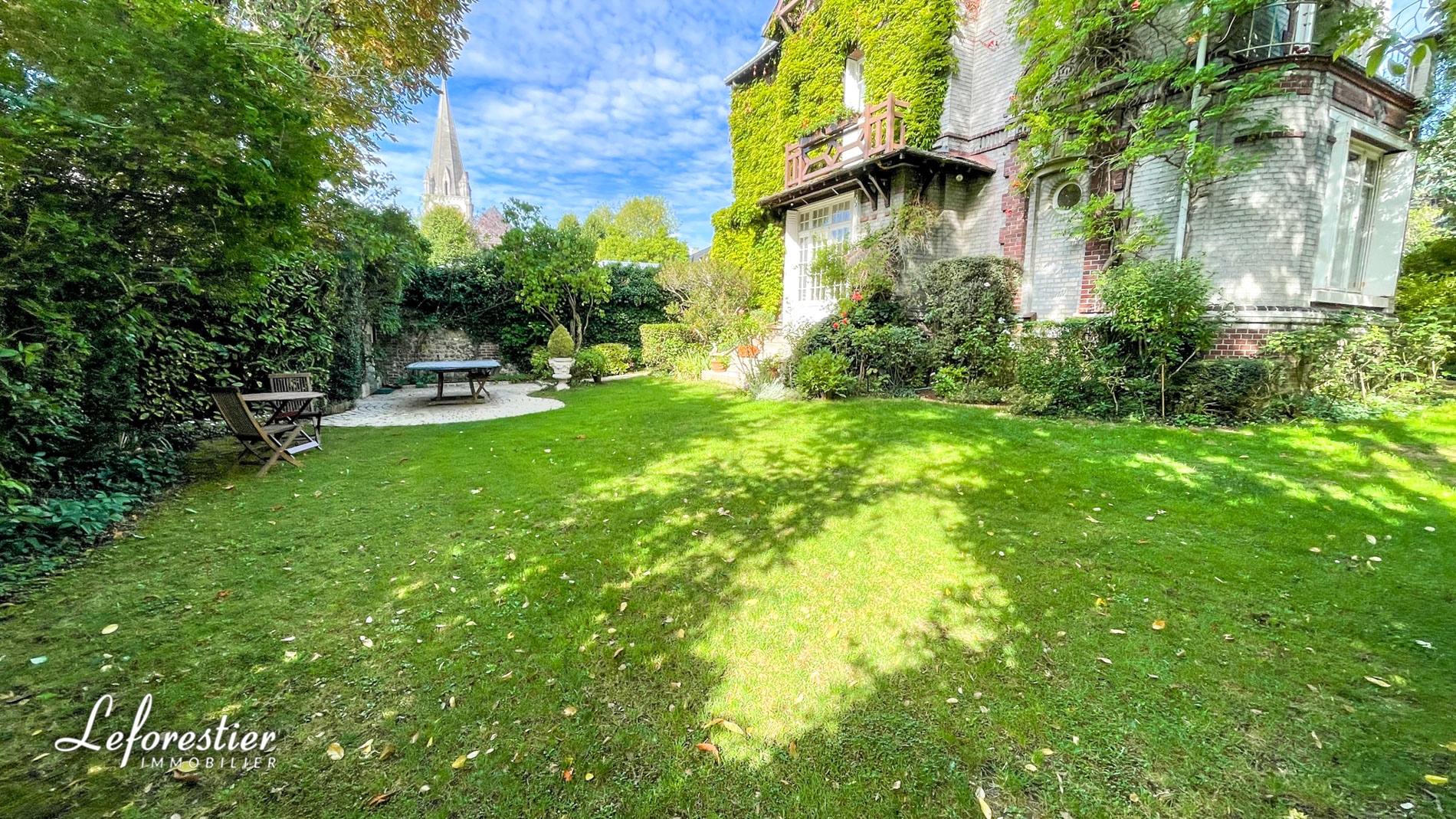 Cette maison bourgeoise est édifiée au cœur du quartier Saint-Gervais à Rouen. Située face à l’église Saint-Gervais cette belle demeure du 19ème bénéficie d’un cadre privilégié avec un beau jardin ombragé et fleuri. C’est un lieu propice à la flânerie, protégé du tumulte de la ville. Bénéficiant des rayons du soleil toute la journée, les pièces sont lumineuses grâce aux nombreuses ouvertures : Baies vitrées, bow-window, balcon, fenêtres anciennes. Les épais murs de brique et de silex sont recouverts d’une splendide vigne vierge apportant un style unique à cette maison et gardant la fraicheur toute la journée.
