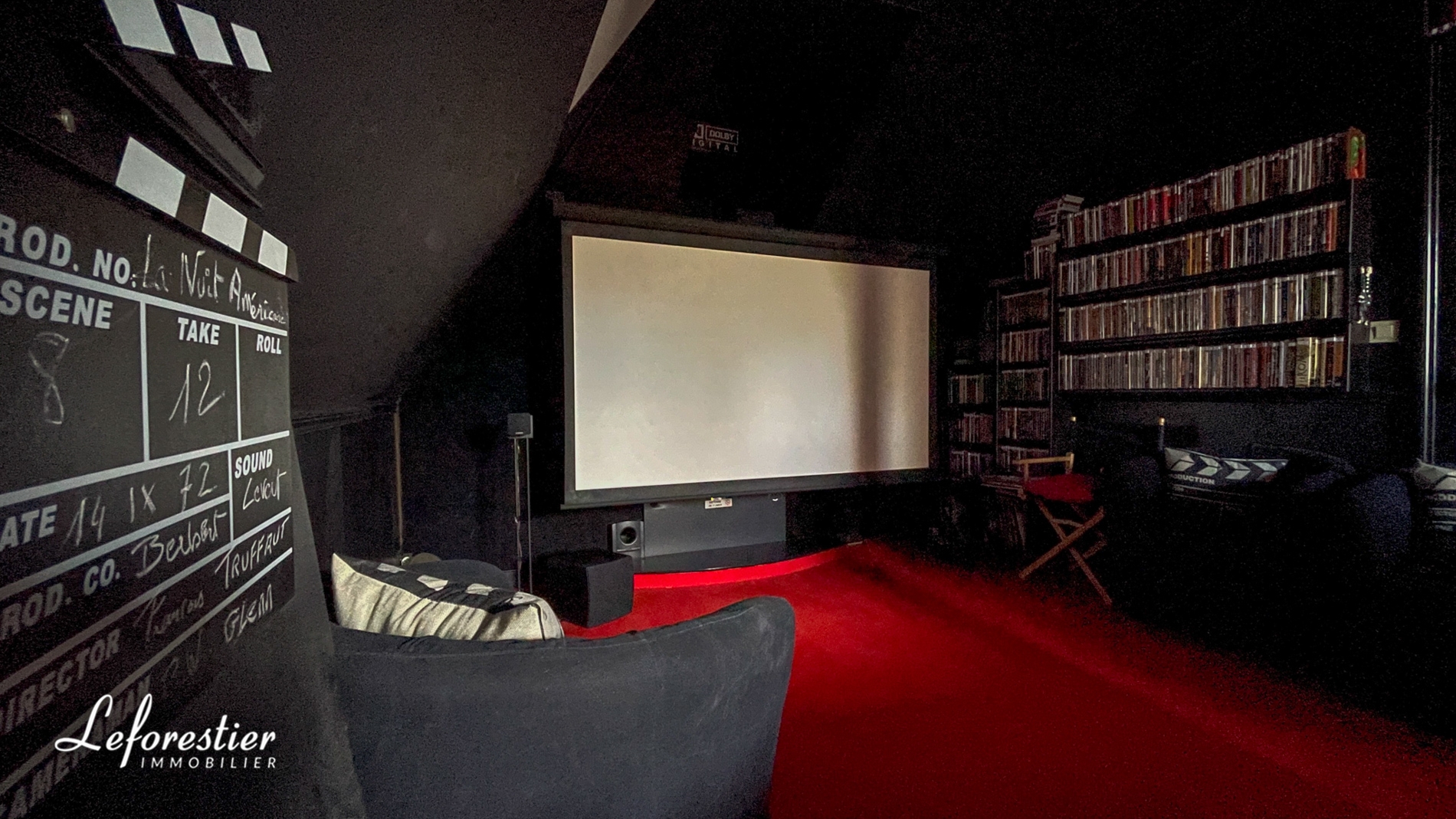 Au deuxième étage, le palier ouvre d’un côté sur une pièce de cinéma qui ravira les cinéphiles de la maison ! De l’autre côté, une salle de bain donnant sur le palier, une chambre avec dressing et salle de douche et une chambre indépendante. Chaque chambre possède donc sa pièce d’eau et cet étage est complètement indépendant, pour le grand plaisir des adolescents rêvant de tranquillité et d’autonomie.