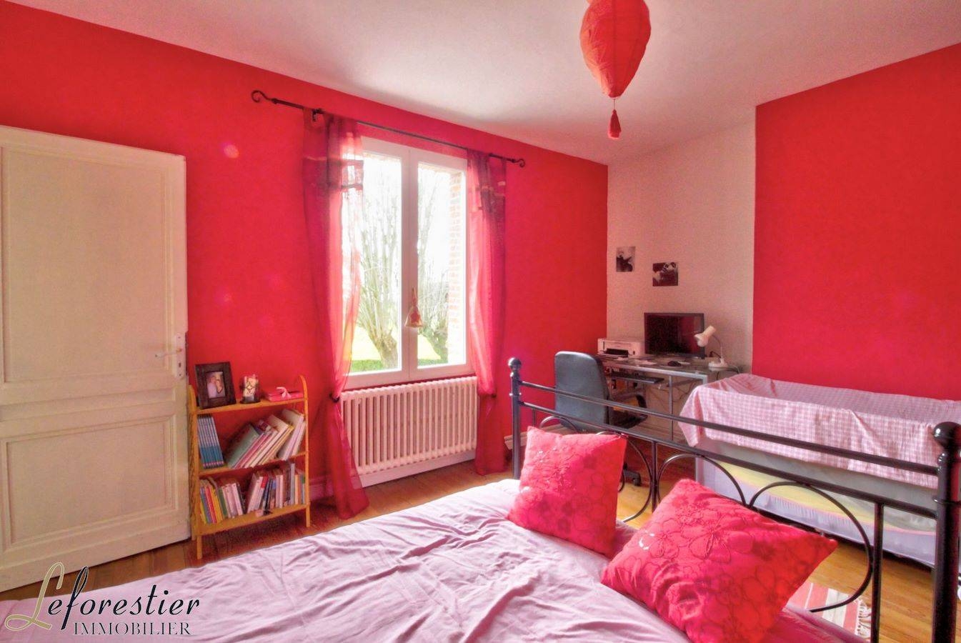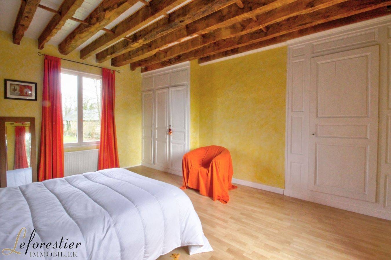 A l’étage, trois chambres puis deux autres encore sous les combles accueillent une grande famille. Il reste même un grenier dans lequel une salle de bains trouverait aisément sa place. Attenant à la maison, une extension offre une arrière cuisine, une chaufferie et une buanderie à cette maison de campagne.