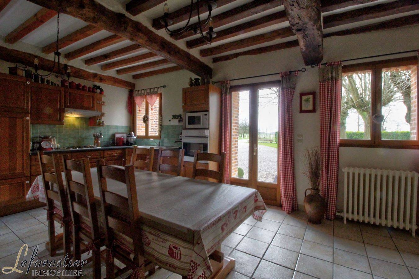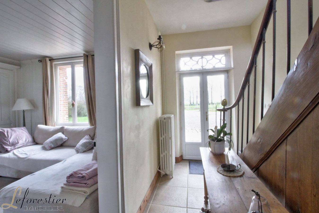 A l’extrême Est du Pays de Caux, entre Tôtes et Bosc-le-hard, à mi-chemin entre Rouen et Dieppe Côte d’Albâtre, notre maison de maître à vendre a été construite en 1750 dans un assemblage élégant de jolies briques de Saint-Jean, brique traditionnelle de Normandie. Les origines de la brique remontent aux égyptiens, puis aux grecs, puis aux romains. Abandonnée en France pendant le moyen âge, elle fît sa réapparition à la renaissance. La brique de Saint–Jean tient sa couleur rouge-orangée de la nature de l’argile de Normandie et de la technique de cuisson au feu de bois. Plus tard, l’arrivée du charbon par les chemins de fer signa l’arrêt de mort de cette brique considérée trop fragile, en particulier pour la construction de grands édifices comme les viaducs et autres immeubles publics.