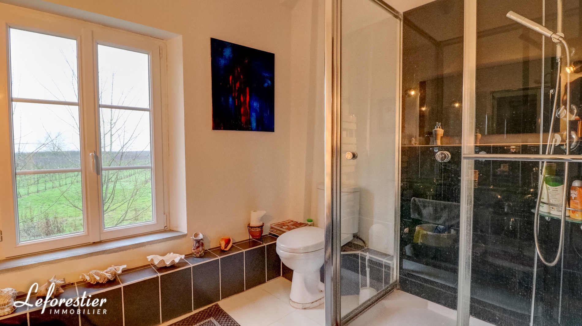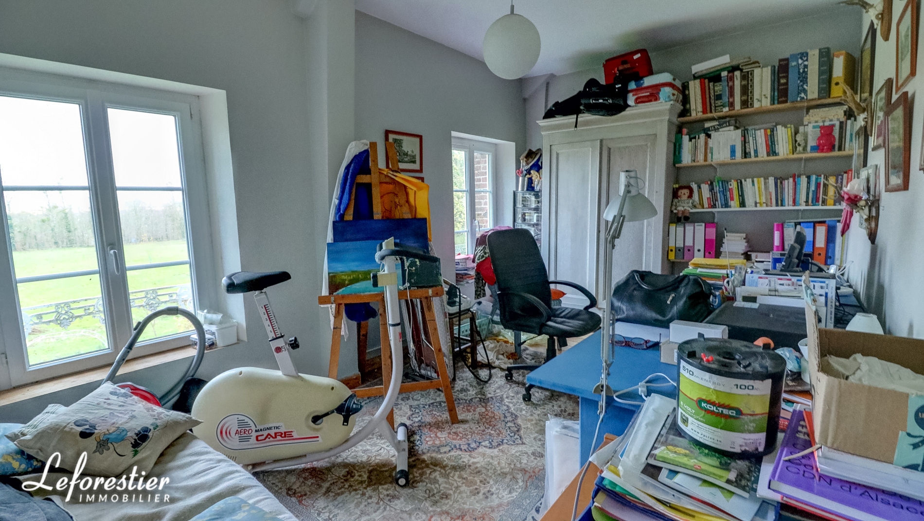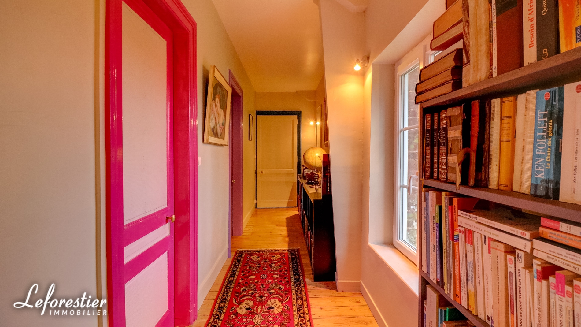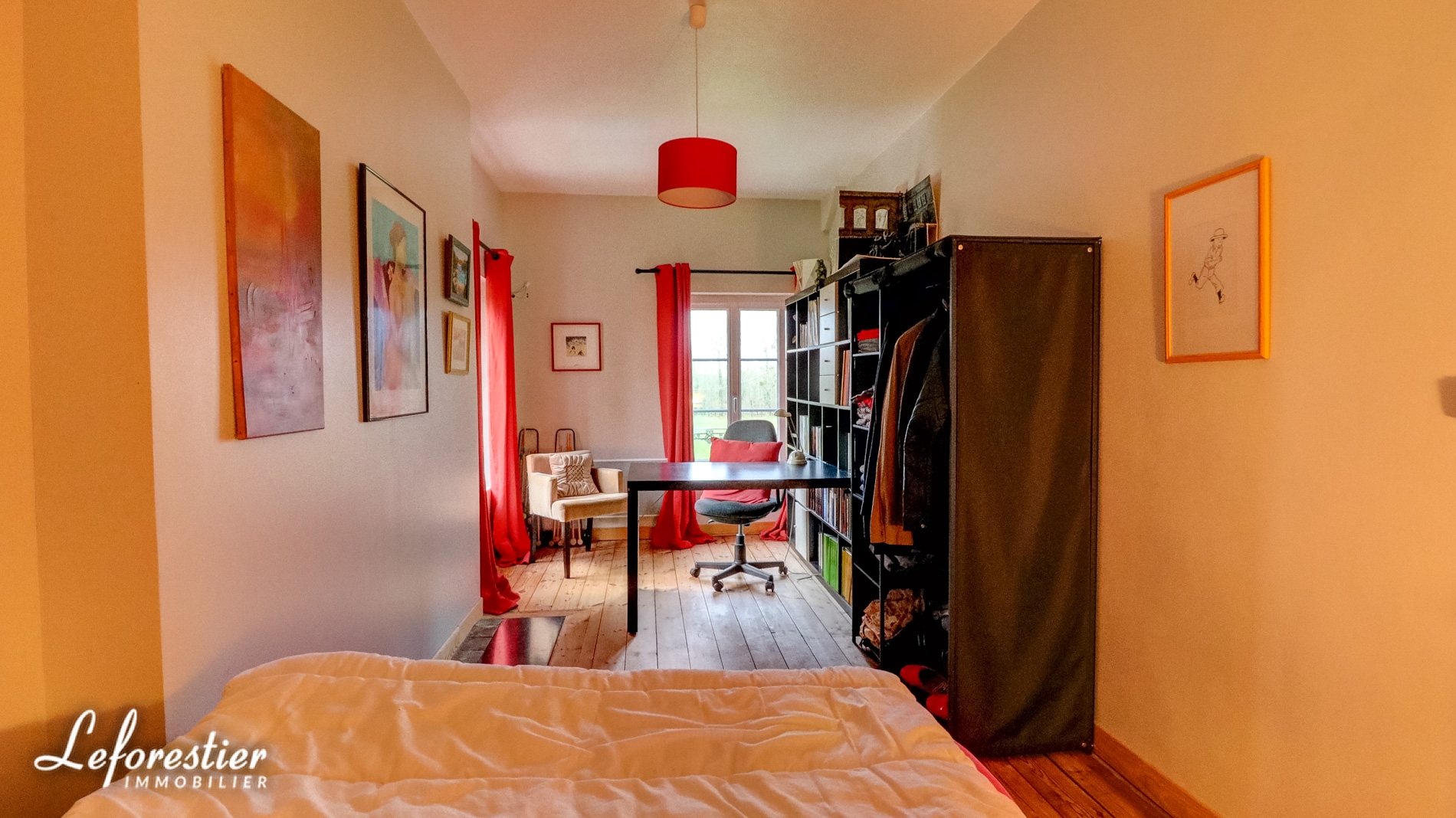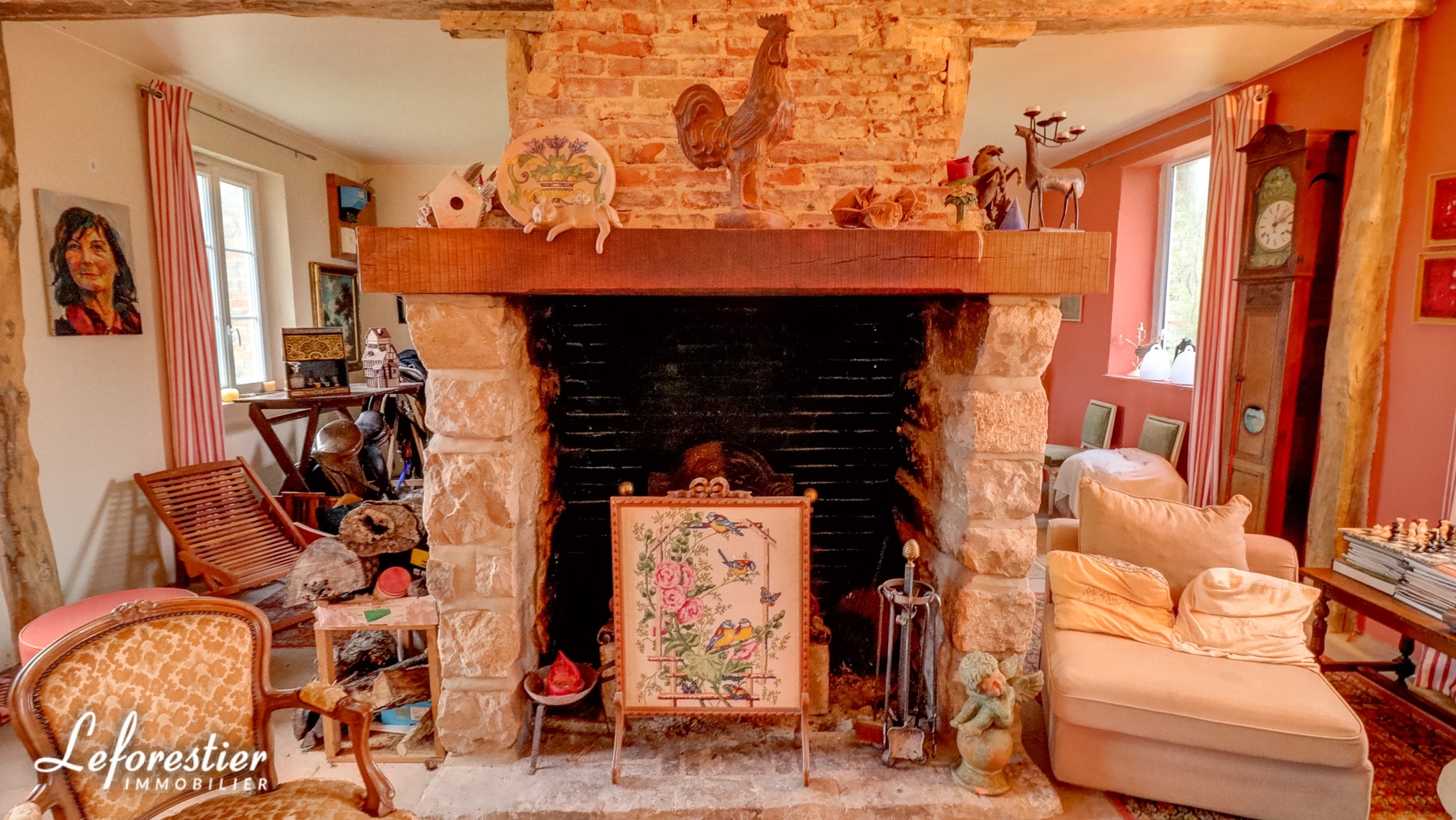 Après avoir parcouru une petite allée, nous voici devant cette belle bâtisse datant de la fin du XIXème siècle. Son environnement calme et préservé saura charmer les amoureux de la nature. Construite en brique, les matériaux sont restés authentiques tout comme les cheminées et le parquet du rez-de-chaussée. A l’étage, les cinq chambres sont confortables et lumineuses et disposent de deux pièces d’eau. La vue de l’étage vers la campagne environnante invite à l’apaisement et à la rêverie. La couverture récente en ardoise naturelle respecte l’authenticité de cette belle propriété de caractère.