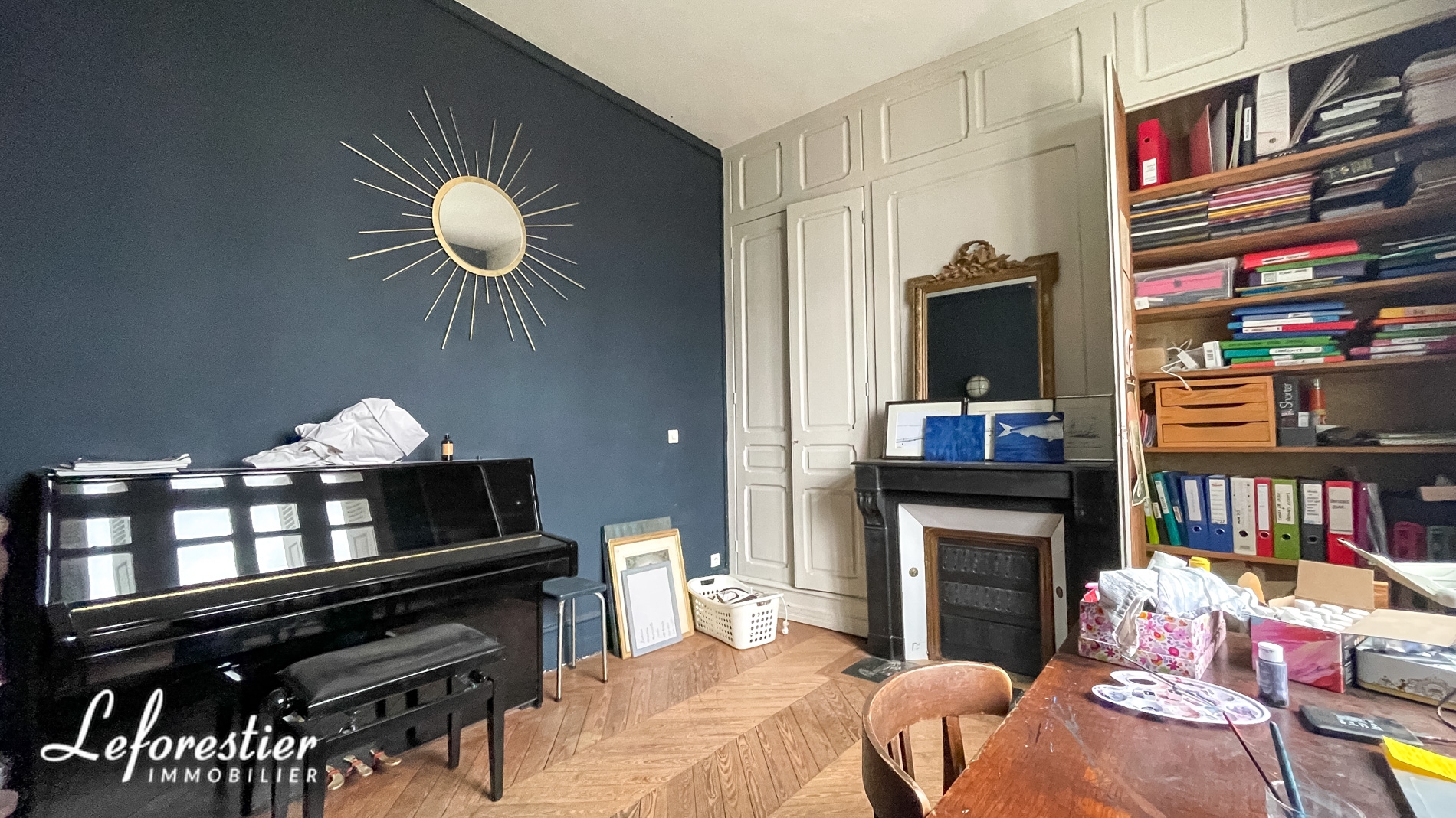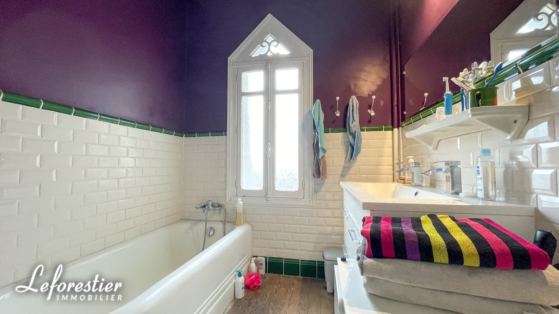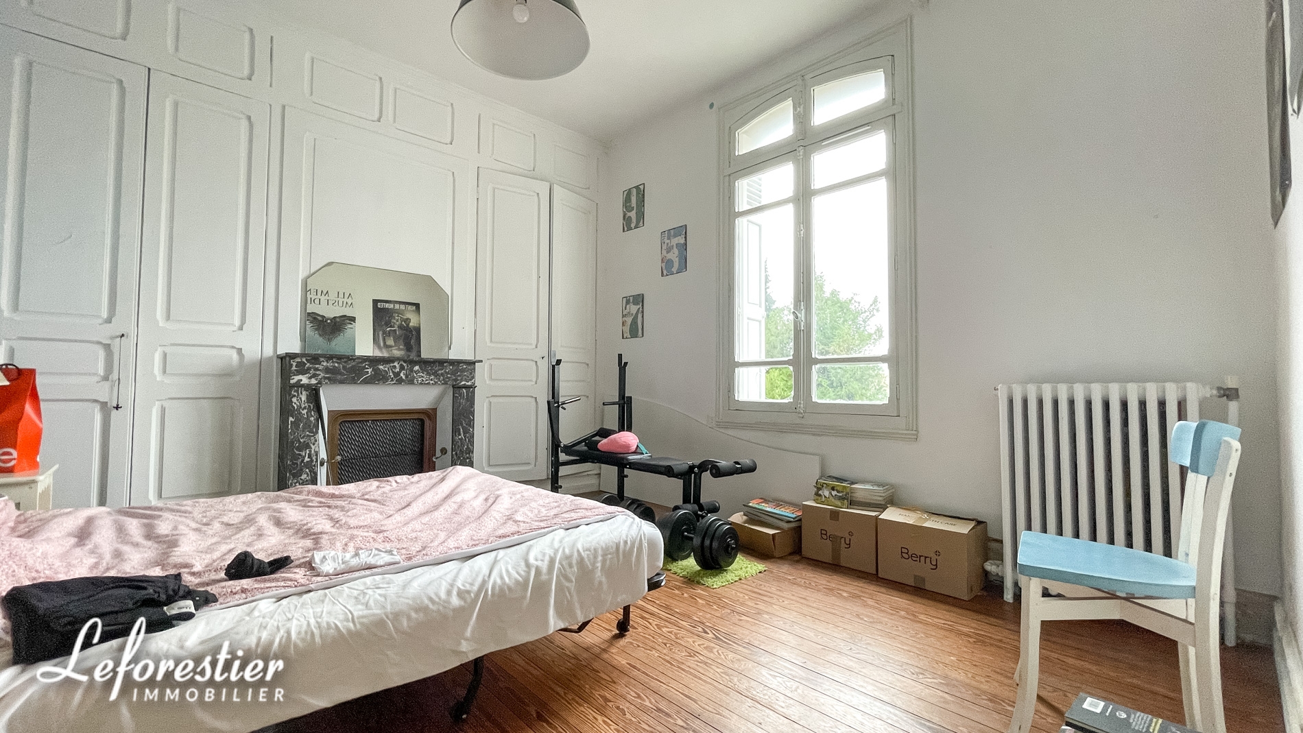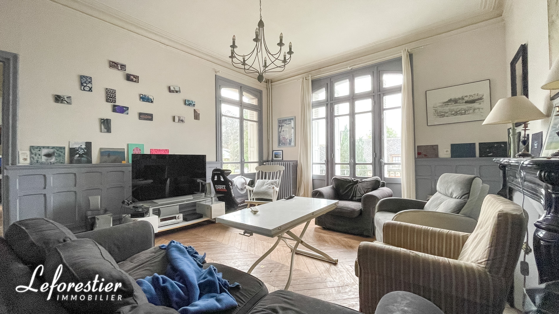 Les espaces de vie sont spacieux et très lumineux avec de splendides éléments très reconnaissables de ces maisons de maître du début du siècle : Les moulures aux plafonds, les très beaux parquets en chêne, les cheminées en marbre et les portes qui ouvrent sur le séjour richement décoré de vitraux d’époque.