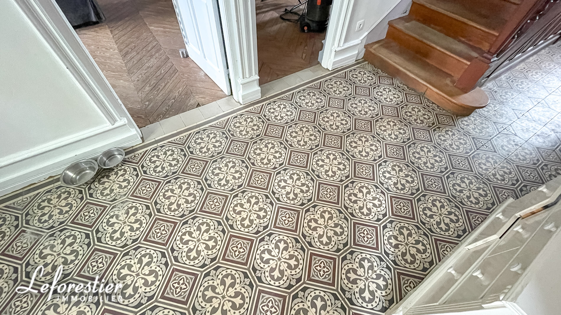 A peine franchie la splendide porte principale, nous découvrons une jolie entrée et son emblématique sol en carreaux de ciment.