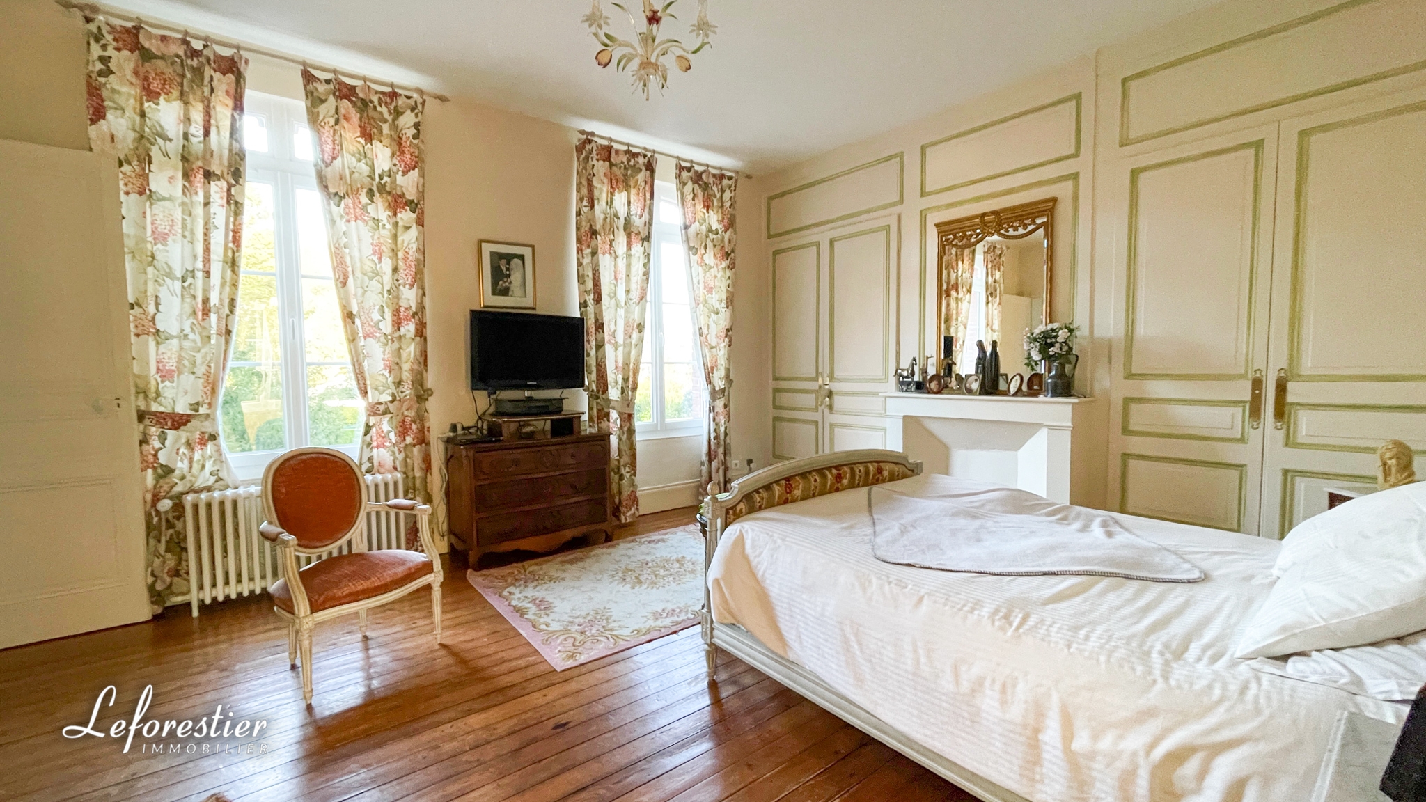 La maison vous accueille avec sa jolie entrée et son bel escalier en chêne. Le grand salon, la salle à manger et le petit bureau sont dotés de magnifiques cheminées en marbre. La distribution des pièces maîtresses de cette demeure est très classique des maisons de caractère de la fin du 19ème. L’état général est excellent et sans travaux structurant à prévoir – toiture, plomberie, chauffage, électricité…
