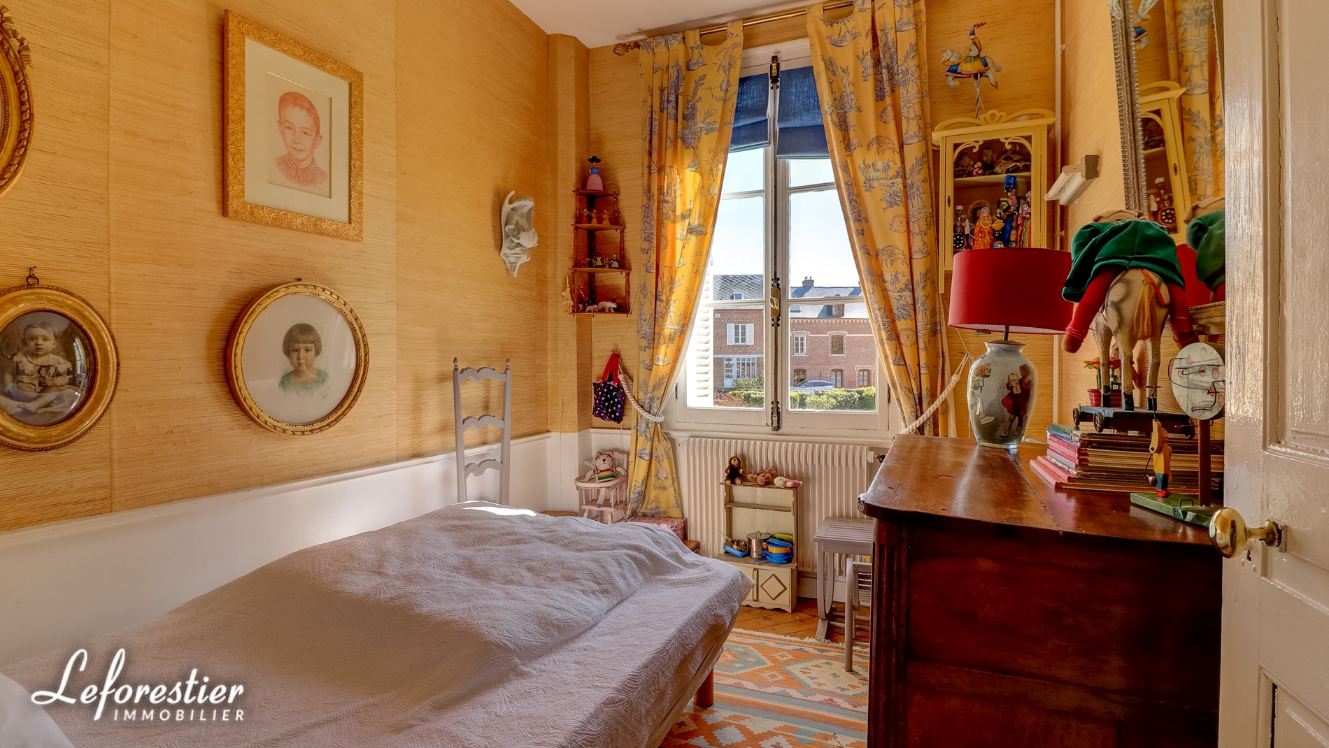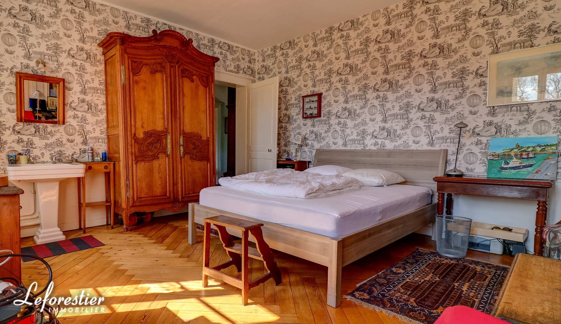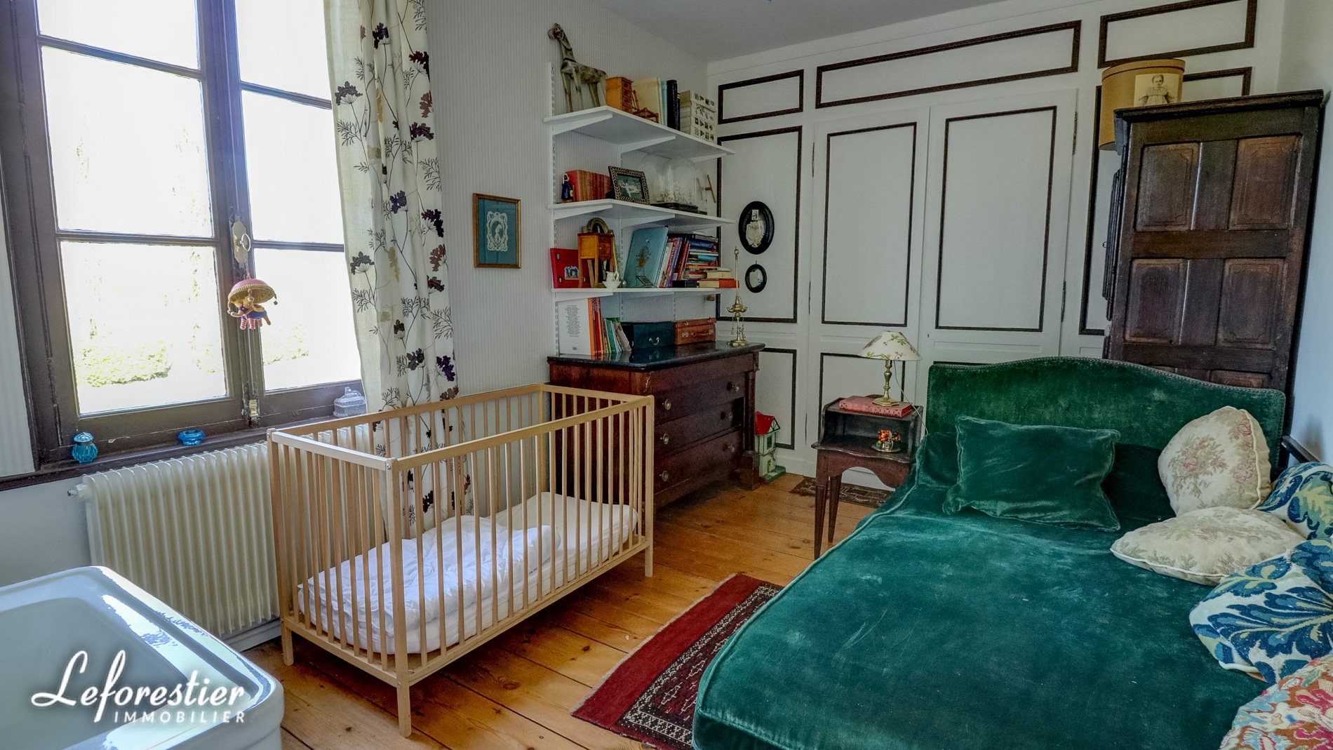 Cette maison de Maître correspond à une époque où les familles étaient souvent nombreuses. Sur les 3 niveaux, six chambres et deux salles de bain se répartissent. Aujourd’hui, après quelques travaux, une activité de chambres d’hôtes trouverait aisément sa place.