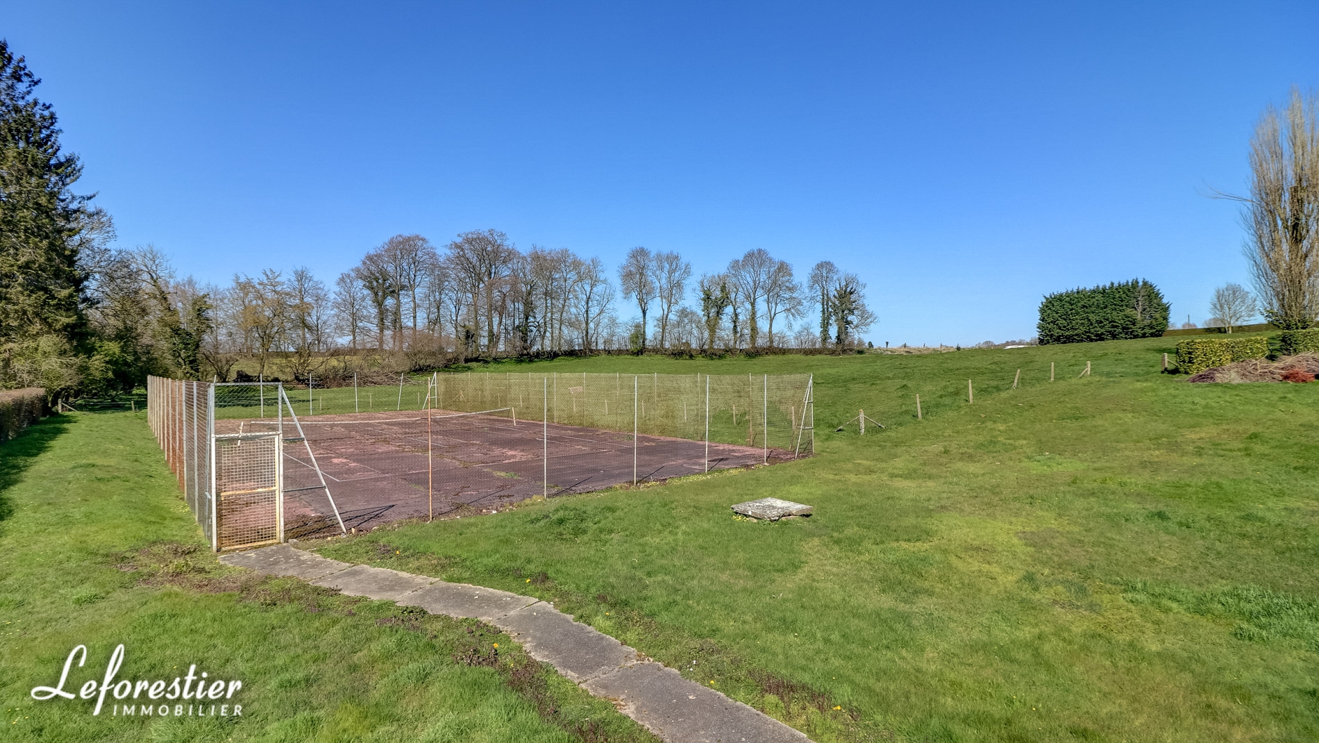 En résumé, le potentiel de cette propriété de caractère est très important : une grande surface habitable dont 6 chambres, une grande écurie dont une partie était un appartement, un garage attenant, un garage 2 voitures, un bucher, un court de tennis et surtout plus d’un hectare et demi de bon herbage pour chevaux.