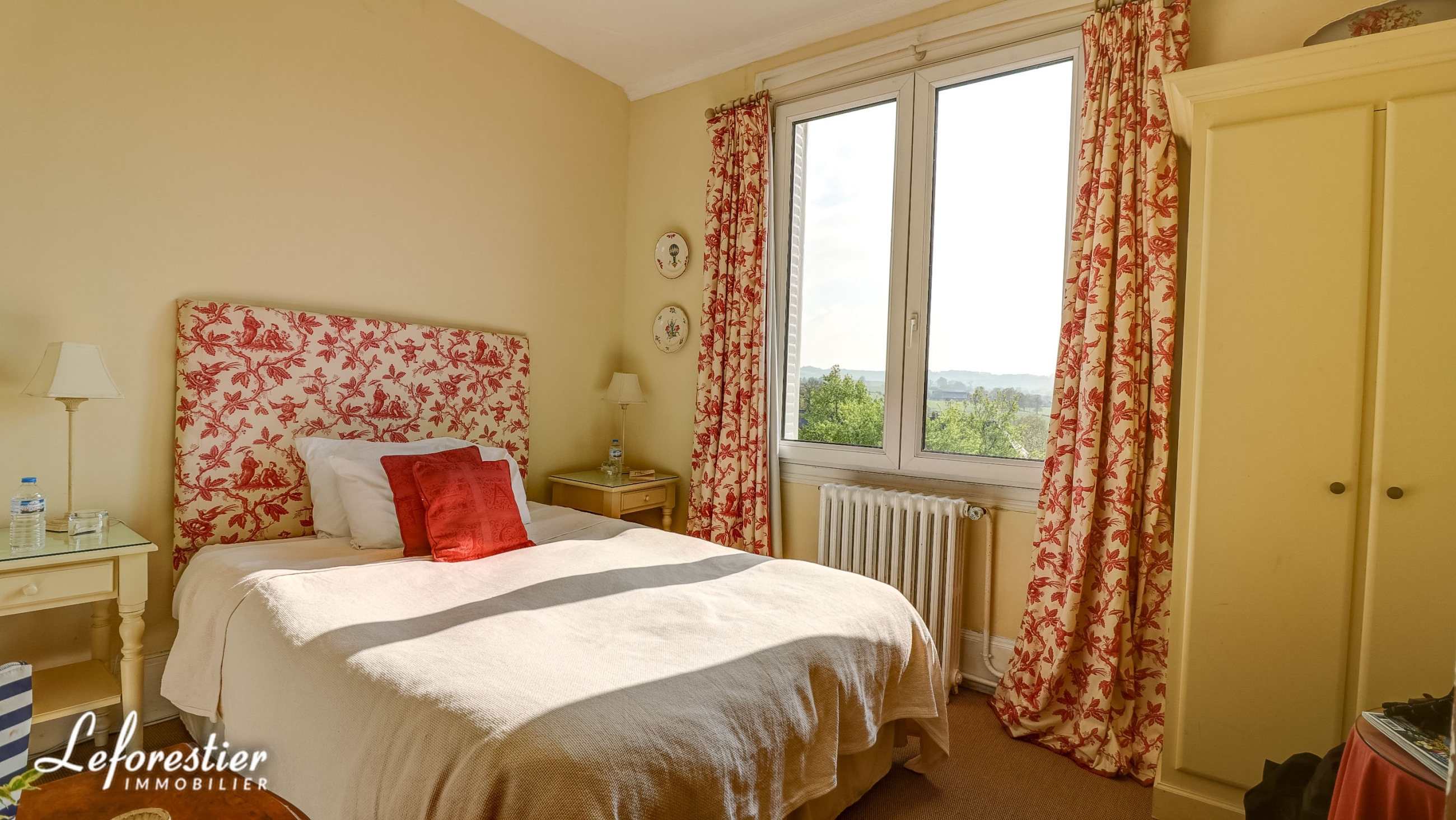 Cette belle maison de maître, construite en 1934 est en parfait état et offre tout le confort moderne. Les pièces sont claires et les grandes fenêtres à double vitrage ouvrent sur un grand jardin arboré et fleuri avec une vue panoramique sur les bocages du Pays-de-Bray et les terres du château de Mesnières-En-Bray. Etonnante découverte que ce Château de la Loire en Normandie !