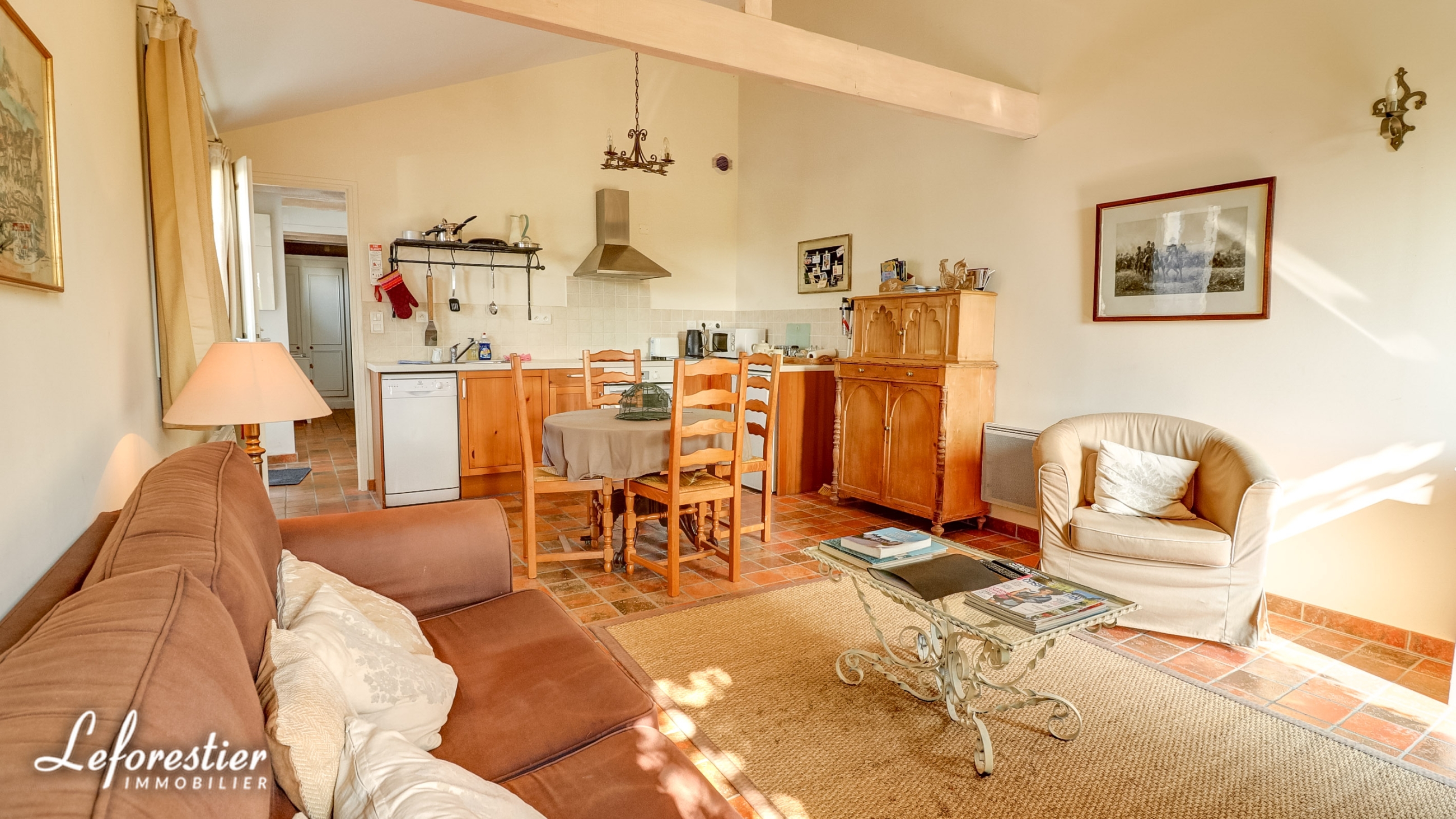 L’ancienne écurie est devenue un confortable gîte de plain-pied et accueille famille, amis ou touristes en toute indépendance. Une chambre, une salle de bains, une pièce à vivre avec coin cuisine y sont aménagés et les hôtes disposent même d’une petite terrasse privée.