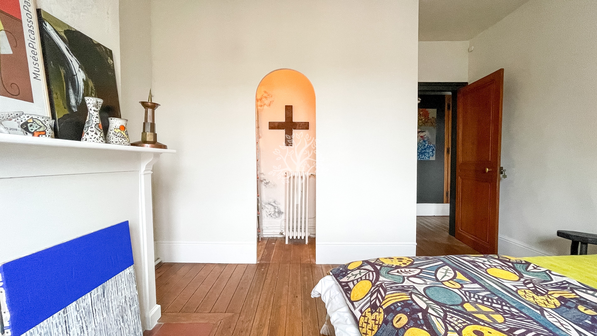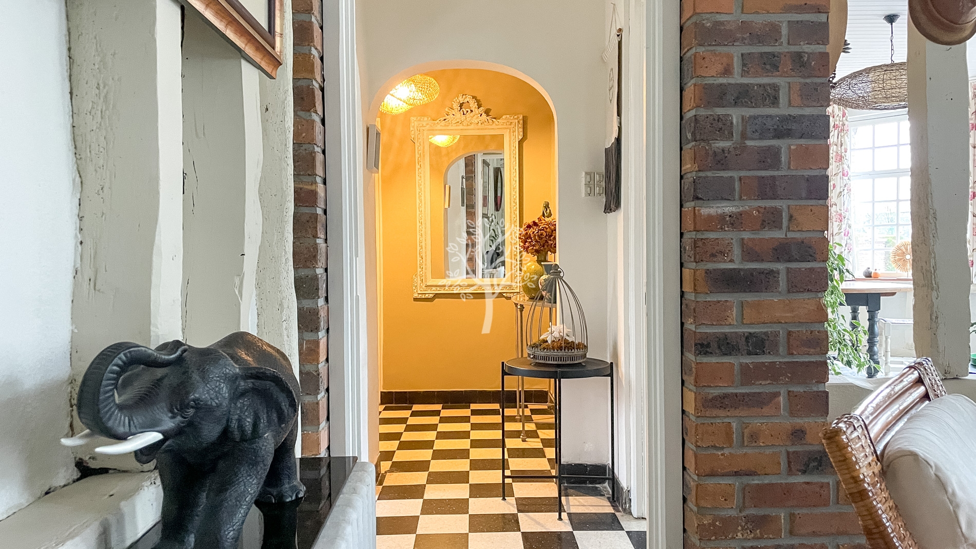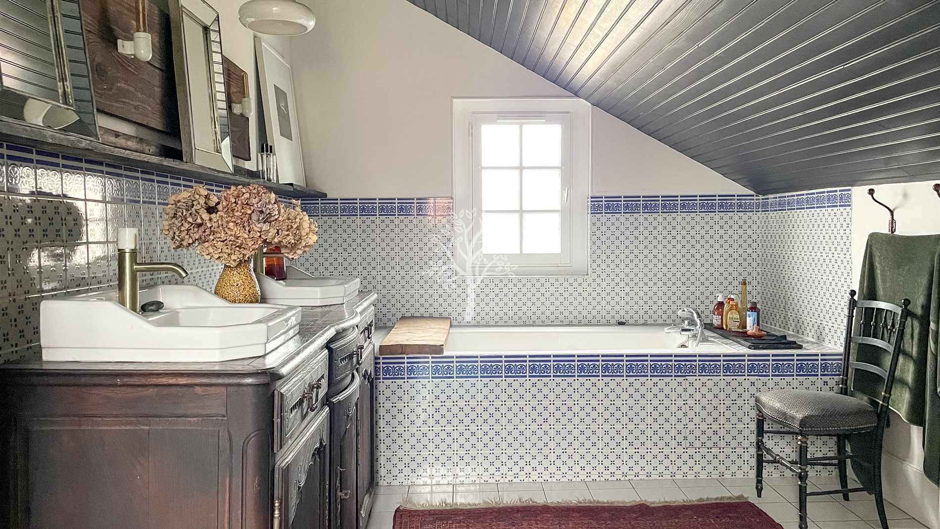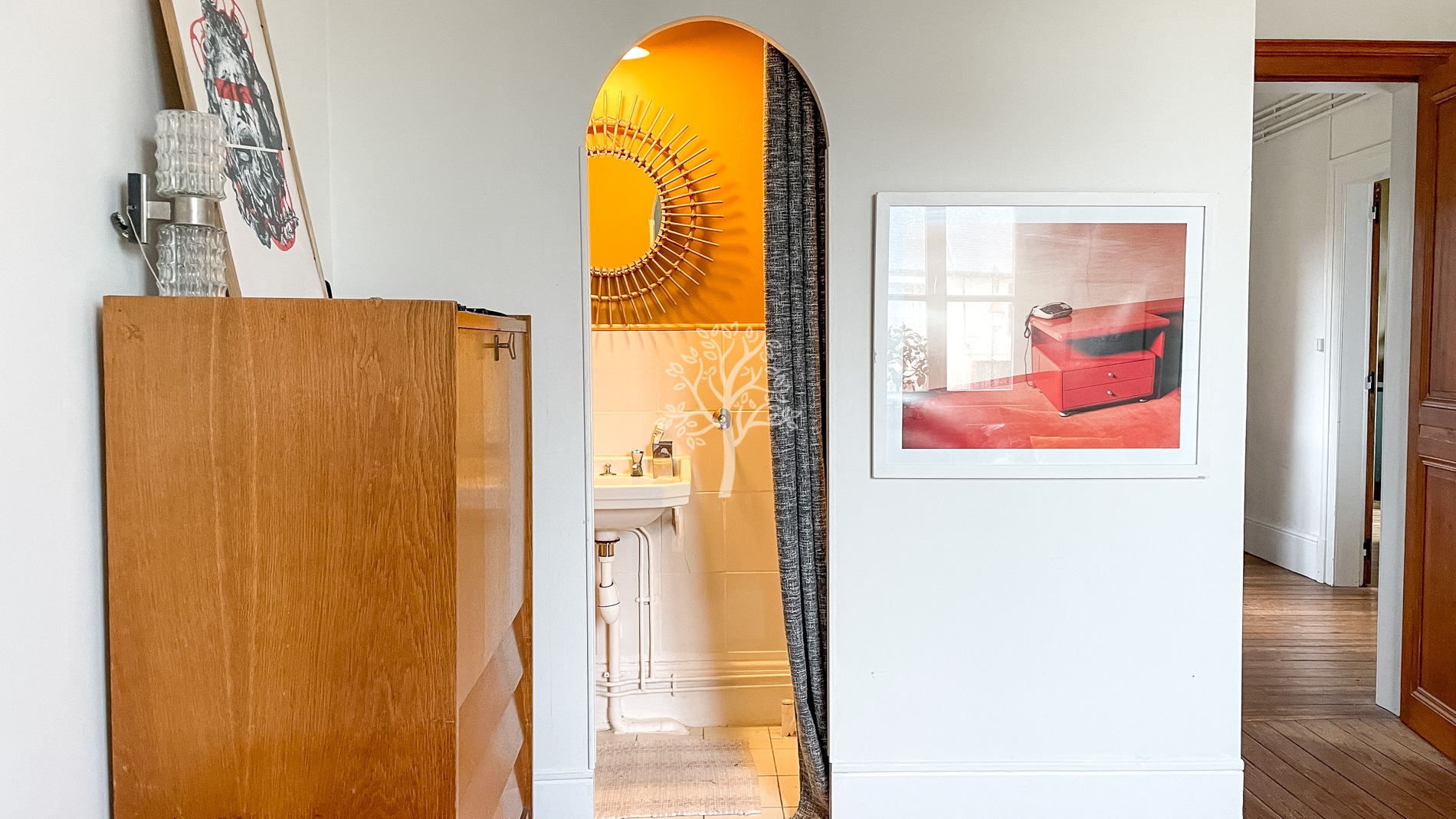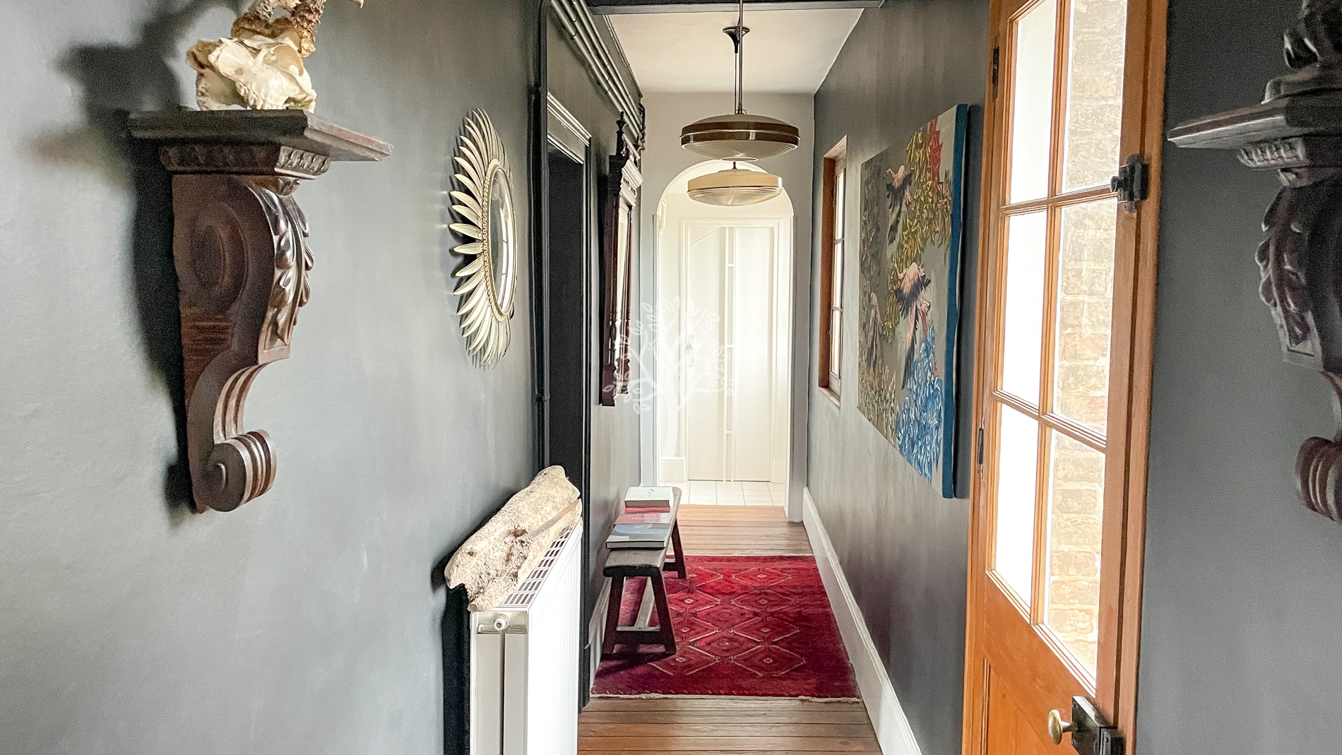 L’atmosphère qui règne dans cette maison est chaleureuse. Vous vous y sentirez bien dès les premiers instants. Certainement grâce à des volumes agréables et une restauration de qualité respectant l’architecture de la bâtisse. L’ouverture de certaines portes de forme arrondie géométrique évoque presque la culture art déco des années 20. Les éléments de décoration ajoutés par les propriétaires sont parfaitement intégrés, il est difficile de deviner ce qui était présent initialement ou non.