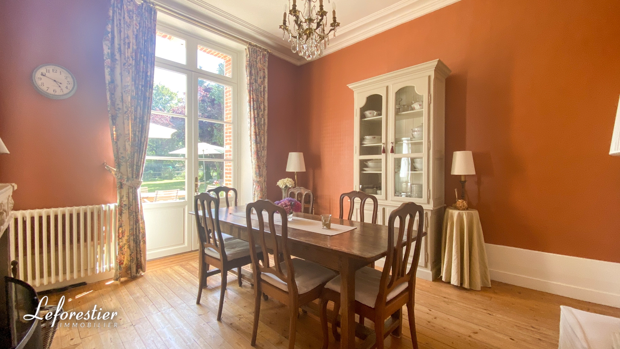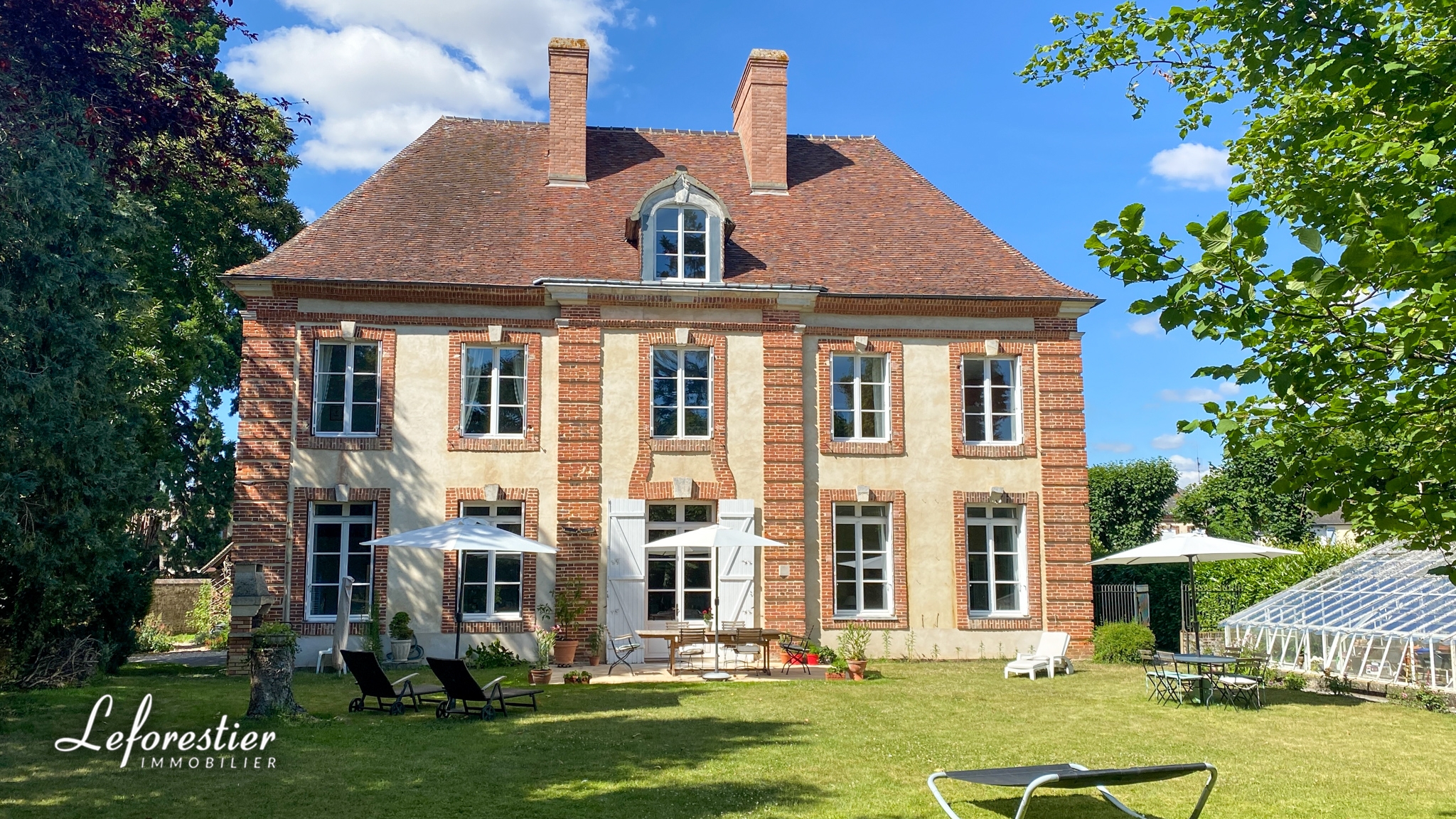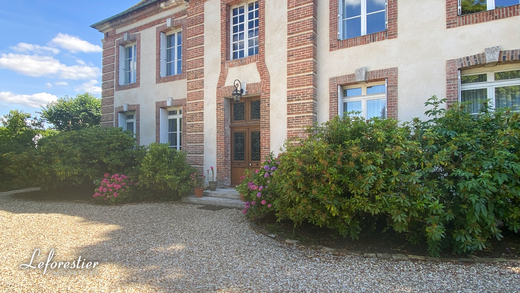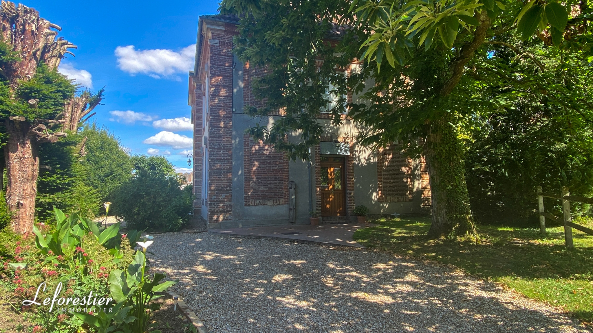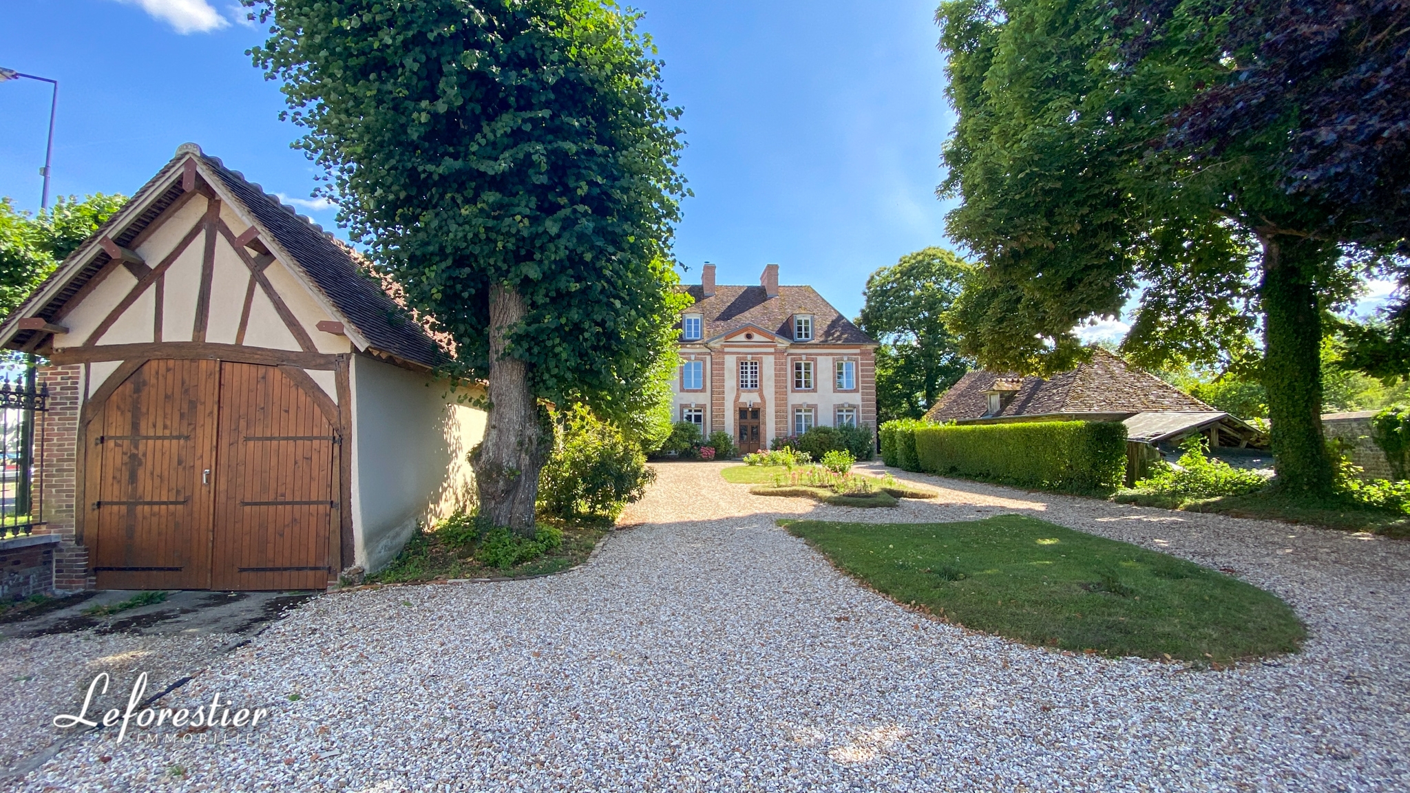 La demeure est édifiée au centre du village, dans le riche département de l’Eure à quelques encablures de Bernay. Elle fut certainement construite par un notable de la région ce qui en fait la plus élégante habitation du village. Elle est nichée au milieu d’un parc entouré de murs, à l’abri des regards. Une fois franchi le grand portail en fer forgé, vous découvrez la cour d’honneur avec son chemin circulaire en graviers. De chaque côté de cet espace, se trouve les 2 dépendances qui furent autre fois les communs et les écuries. Elles peuvent être aisément transformées en de jolis gîtes de charme avec la magnifique poutraison et les toitures en tuiles normandes. Le manoir est couvert de la même façon afin d’obtenir un bel ensemble harmonieux et typique de cette région. A l’arrière de la maison, exposée sud, vous découvrez le parc avec ses arbres centenaires, ses arbres fruitiers, son jardin potager et sa marre. Les passionnés de jardin seront ravis de trouver une splendide serre construite à l’époque de la maison afin de faire pousser les semis de l’année.