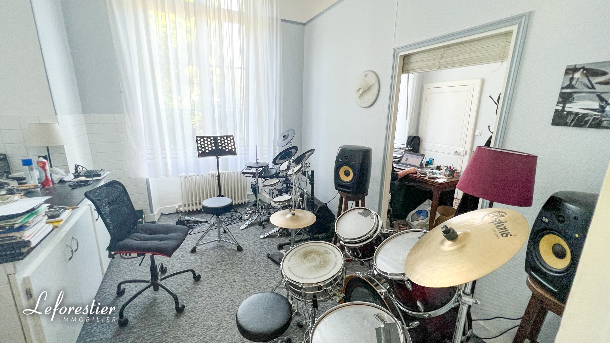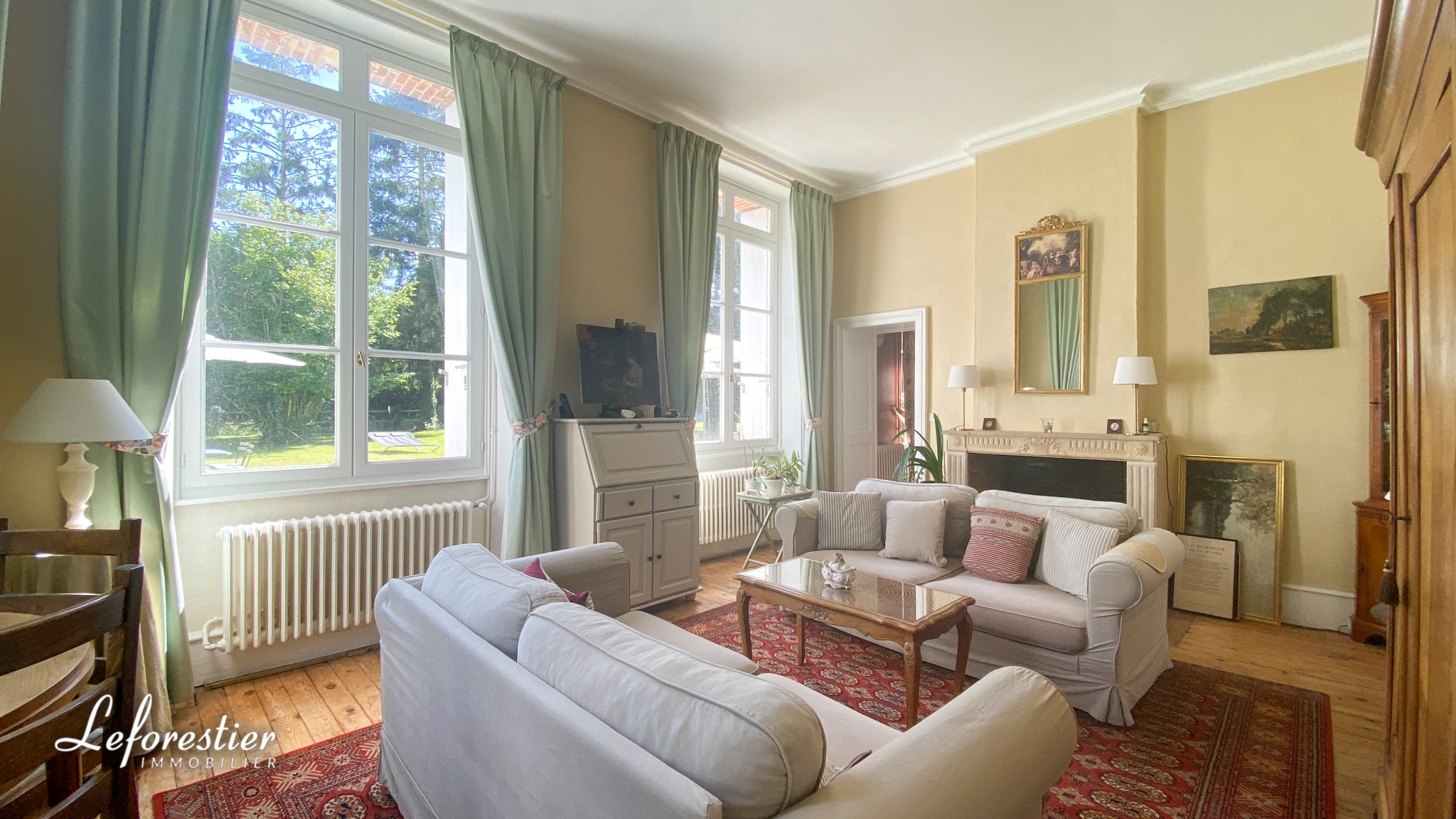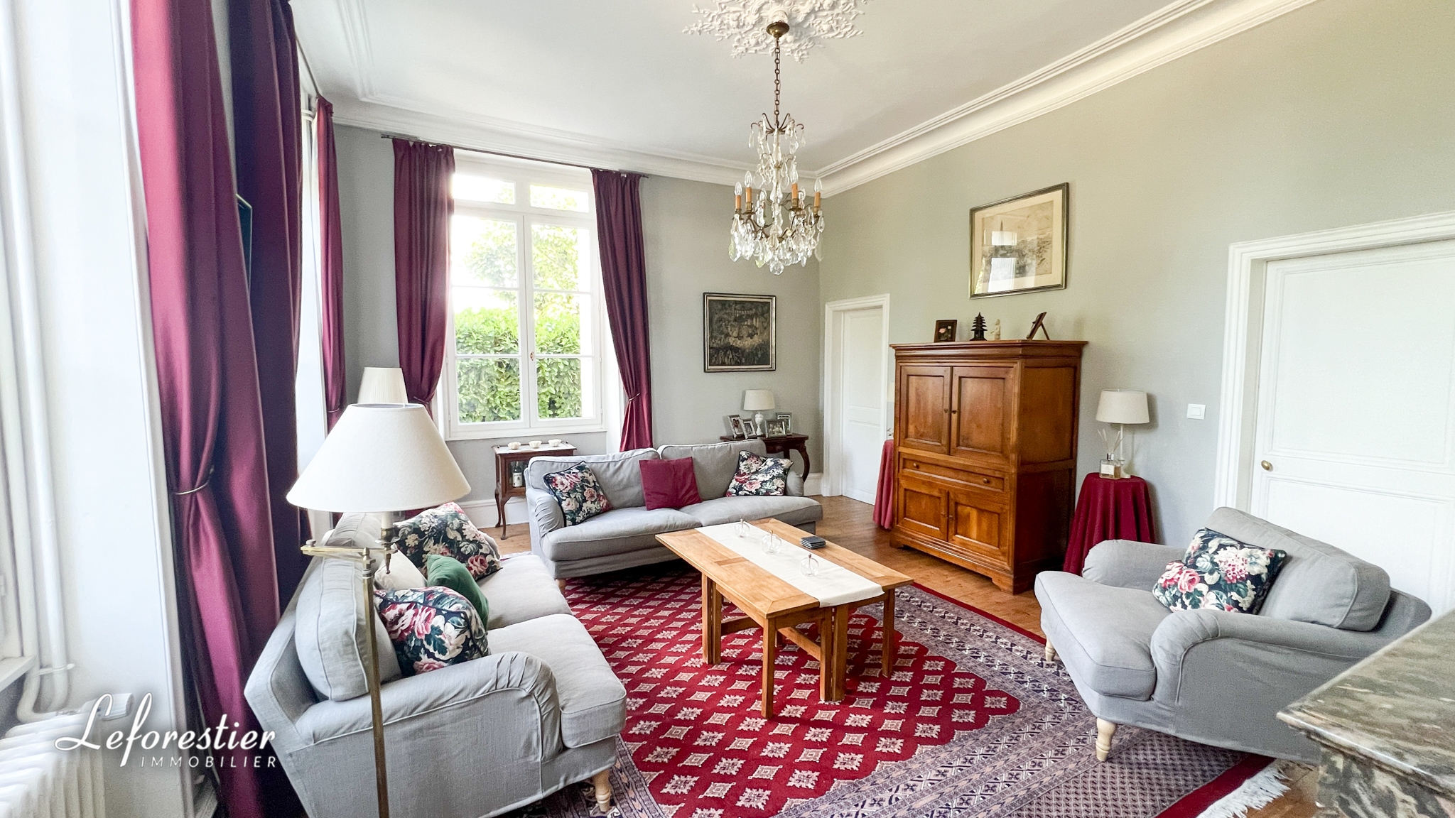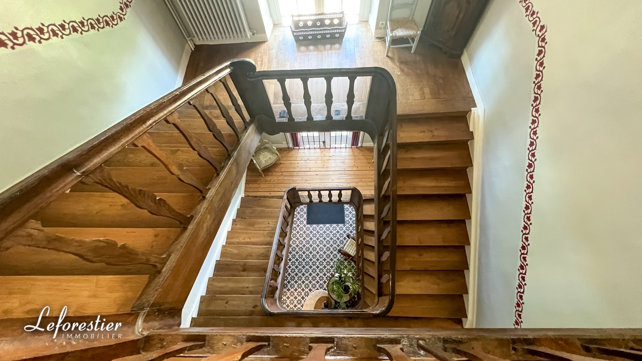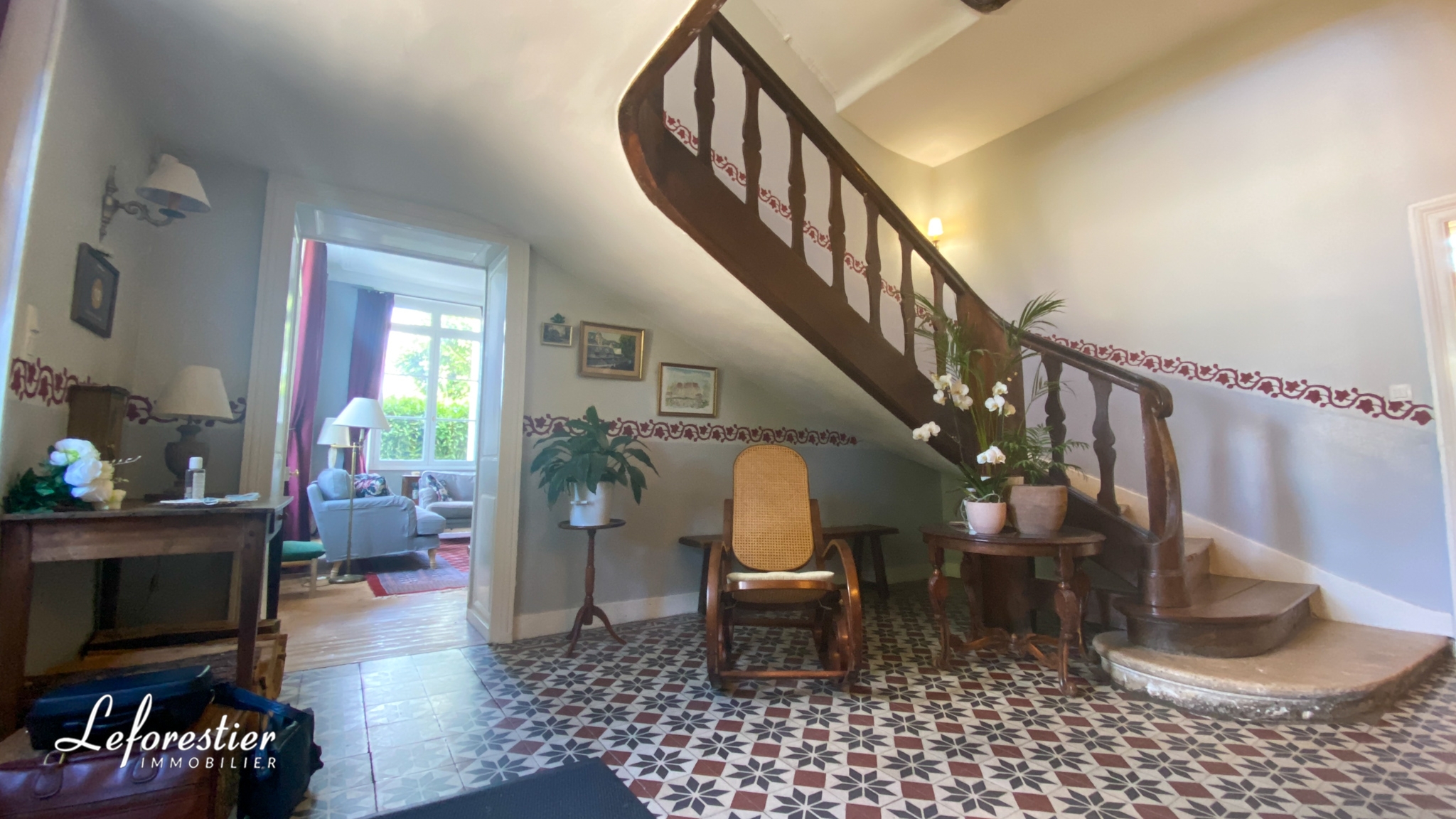 Après avoir franchi la majestueuse porte d’entrée, on découvre un superbe sol en carreaux de ciment et un escalier aux dimensions impressionnantes. On y retrouve l’atmosphère de ces grandes maisons bourgeoises avec ses grandes hauteurs sous plafond, ses moulures si spécifiques de cette époque. La lumière est omniprésente dans toutes les pièces. Les pièces de vie sont spacieuses, avec les deux salons et la salle à manger, les élégantes cheminées en marbre complètent leur élégance. Une quatrième pièce est utilisée en bureau et pièce de musique. Elle peut être aisément remaniée en chambre et salle de bains. Le rez-de-chaussée offre une cuisine aménagée, une buanderie et un WC.
