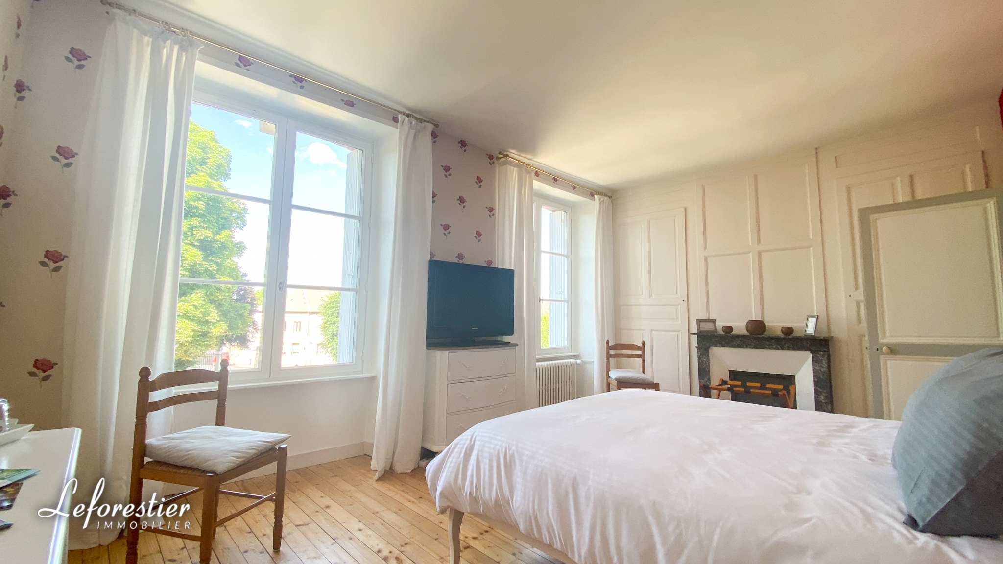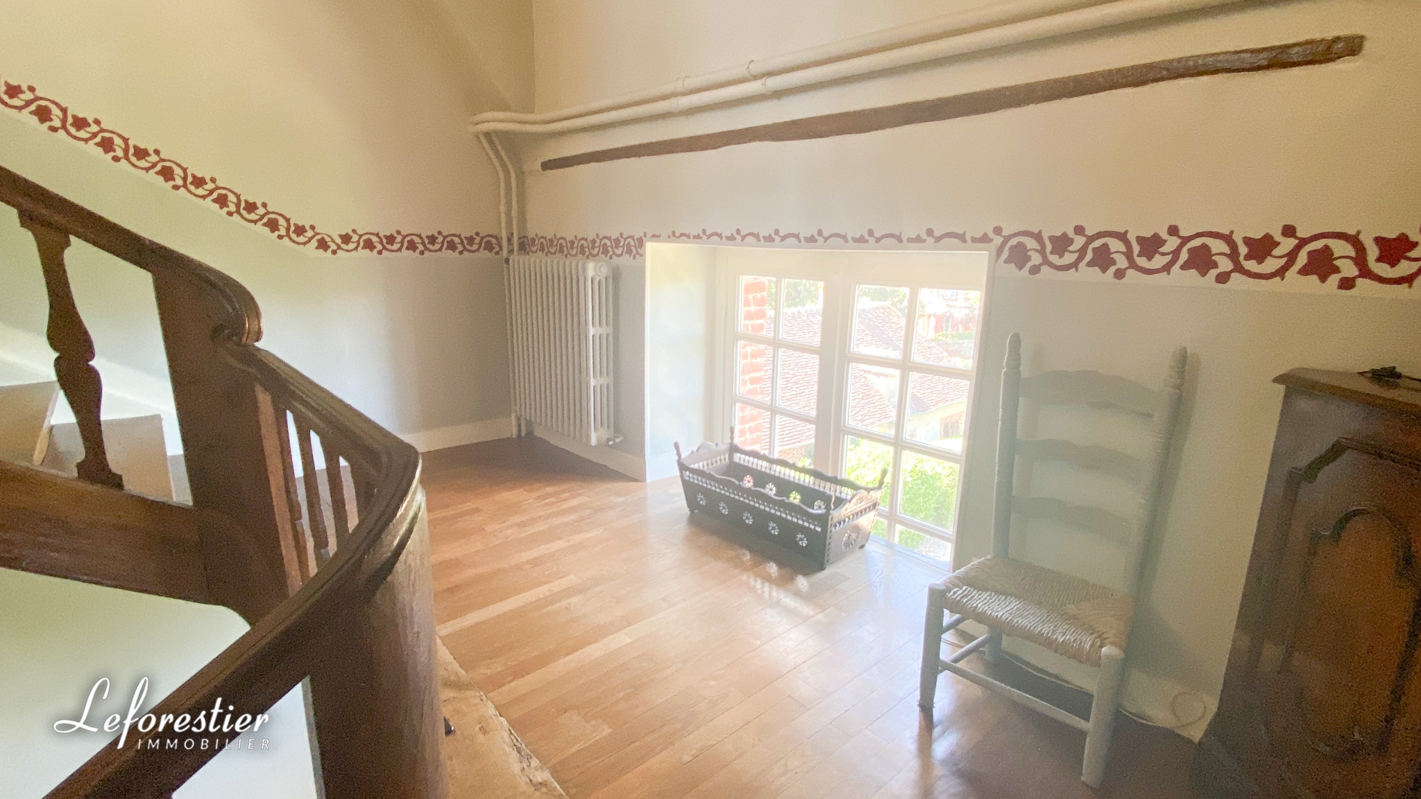 Au 1er étage se trouve un grand palier desservant 5 grandes chambres, 4 salles de douches et 2 toilettes. Le deuxième étage possède aussi 2 belles chambres, une salle de bains et une grande pièce qui peut devenir une suite parentale.
