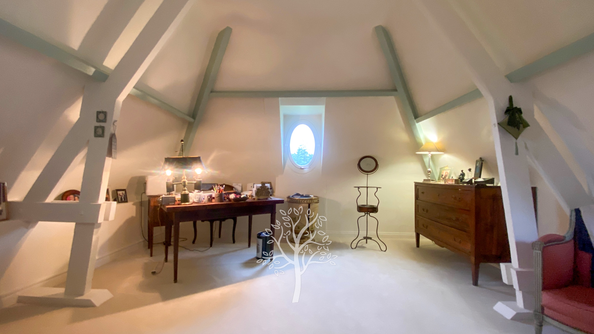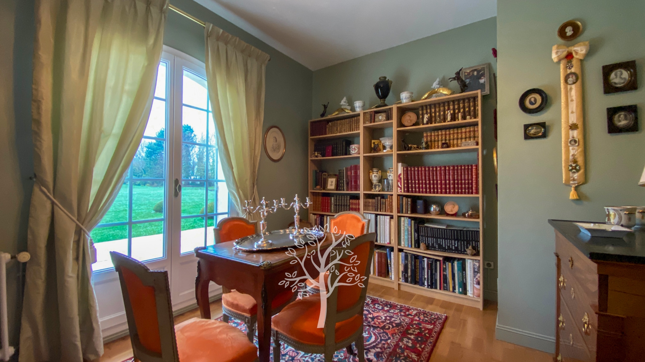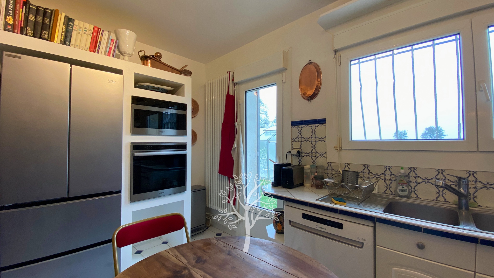 La maison a été imaginée par le précédent propriétaire architecte. Elle privilégie la lumière et l’espace. Les pièces de vie s’ouvrent sur la terrasse sud face au parc : entrée, petit salon, bureau bibliothèque, salle à manger, grand salon avec cheminée traditionnelle, cuisine aménagée indépendante, salle d’eau, toilettes, hall avec escalier vers le premier étage. Palier, quatre chambres cosy et confortables, spacieuse chambre avec dressing privatif, salle de bains et toilettes. Au sous-sol, cave, chaufferie buanderie et garage. Petite dépendance à usage d’abri de jardin.