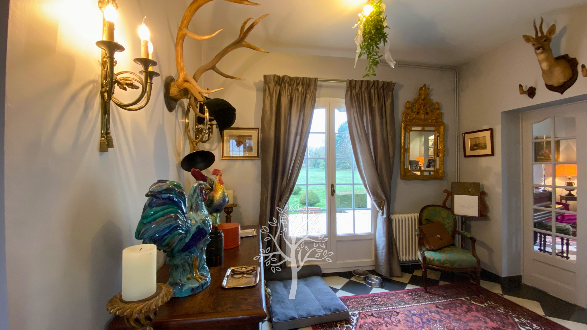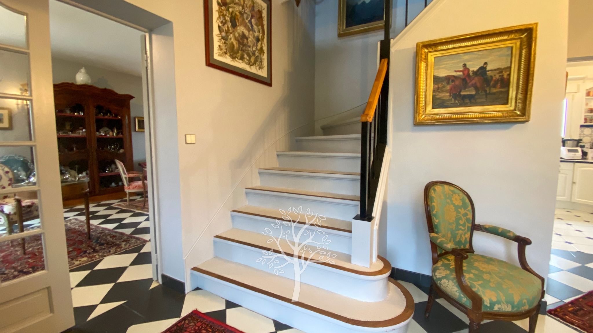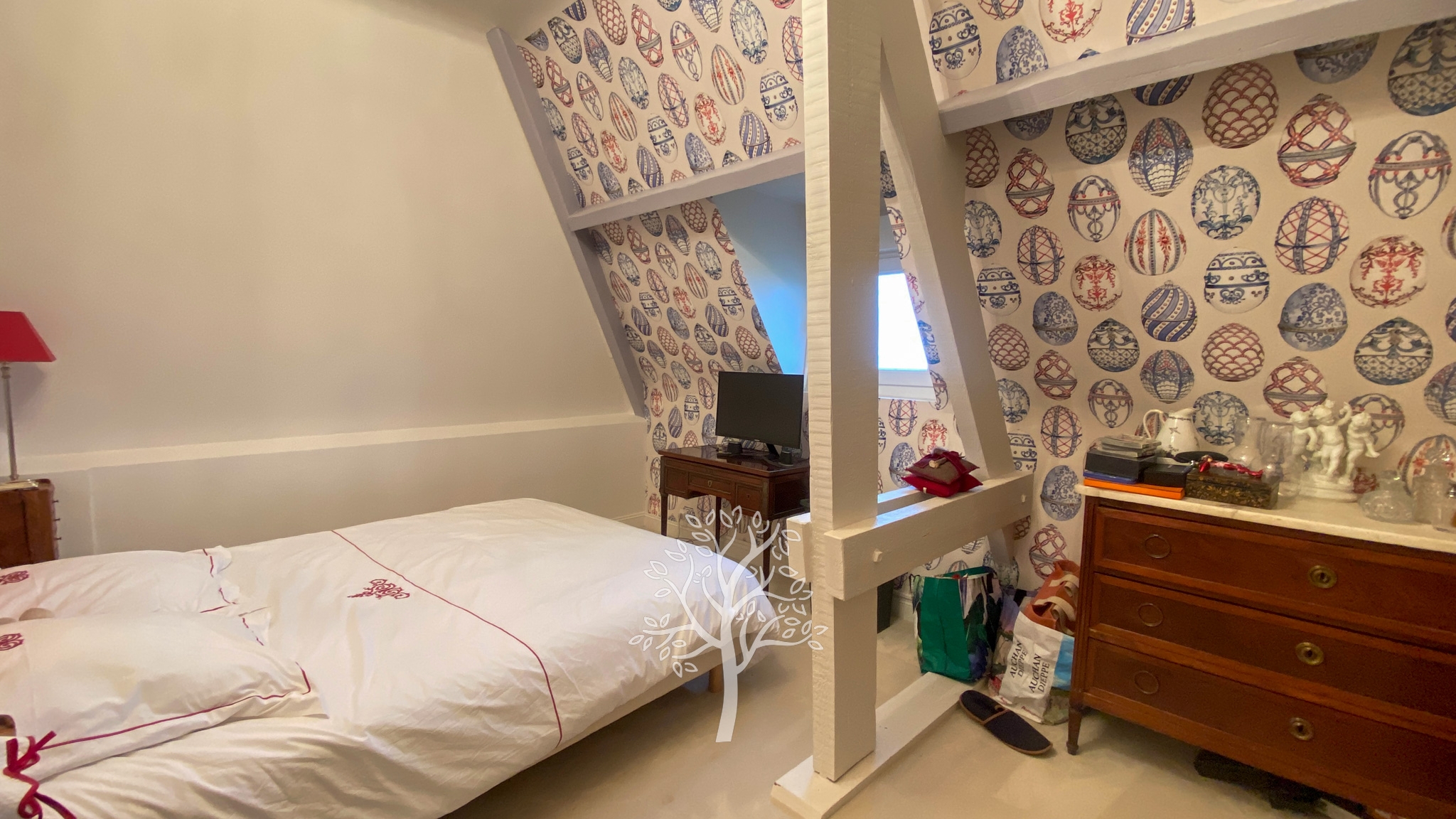 La maison a été imaginée par le précédent propriétaire architecte. Elle privilégie la lumière et l’espace. Les pièces de vie s’ouvrent sur la terrasse sud face au parc : entrée, petit salon, bureau bibliothèque, salle à manger, grand salon avec cheminée traditionnelle, cuisine aménagée indépendante, salle d’eau, toilettes, hall avec escalier vers le premier étage. Palier, quatre chambres cosy et confortables, spacieuse chambre avec dressing privatif, salle de bains et toilettes. Au sous-sol, cave, chaufferie buanderie et garage. Petite dépendance à usage d’abri de jardin.