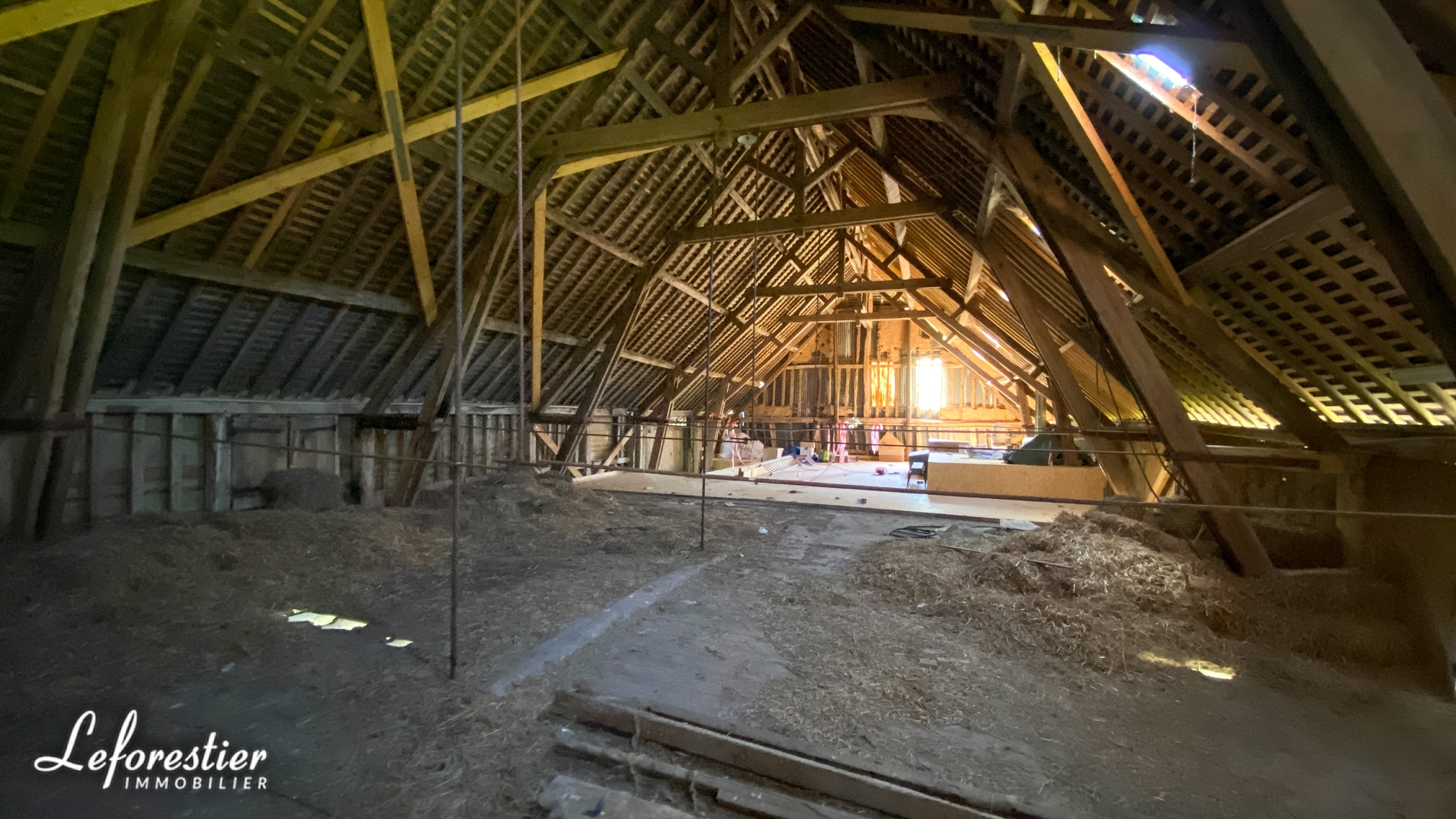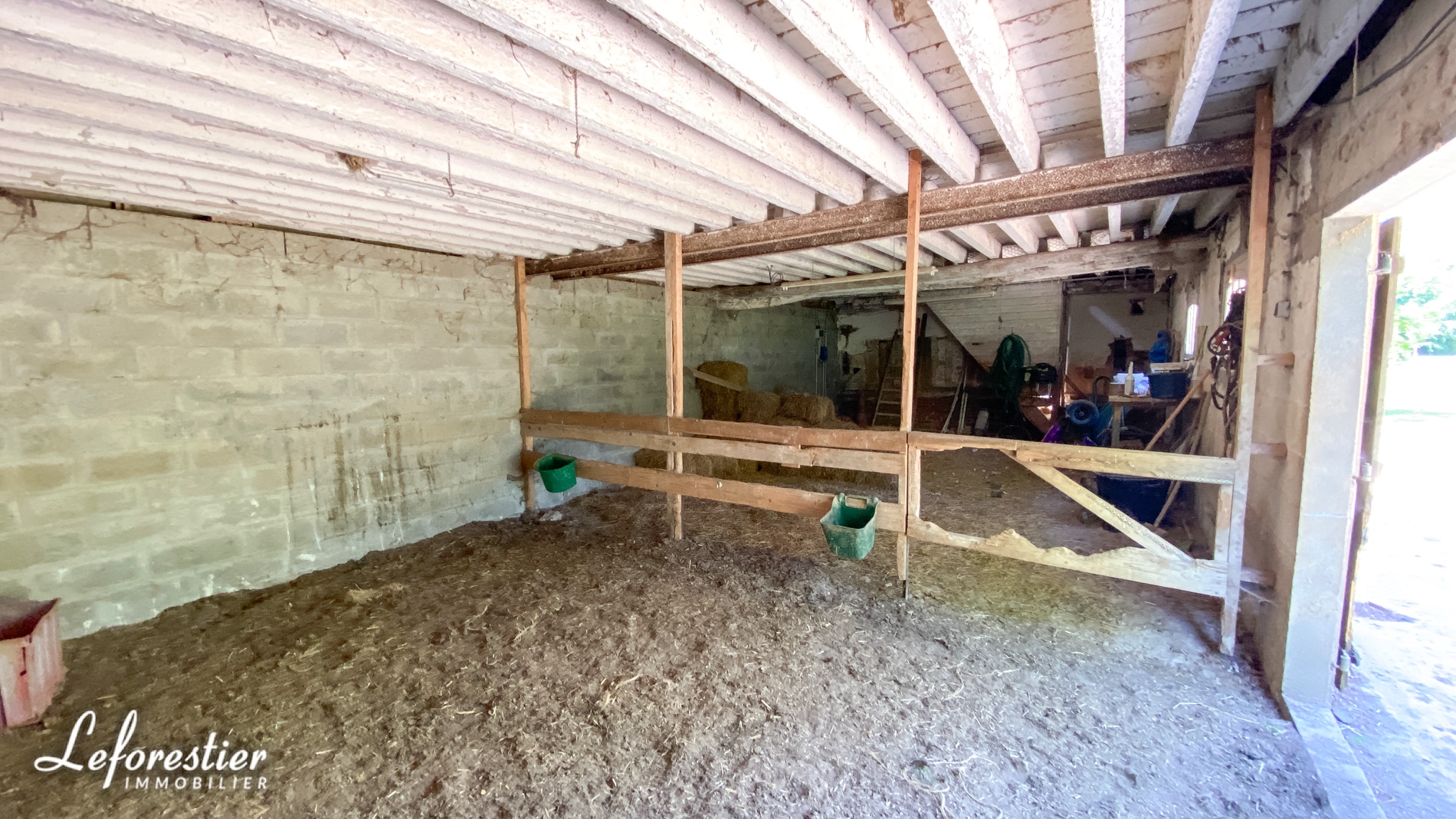 Cette grange est actuellement une stabulation libre pour deux chevaux qui pâturent ici à l’année. La dalle béton à l’extérieur est parfaite pour que les animaux puissent rester les pieds au sec en hiver et que pour les engins agricoles passent sans abimer la pâture.