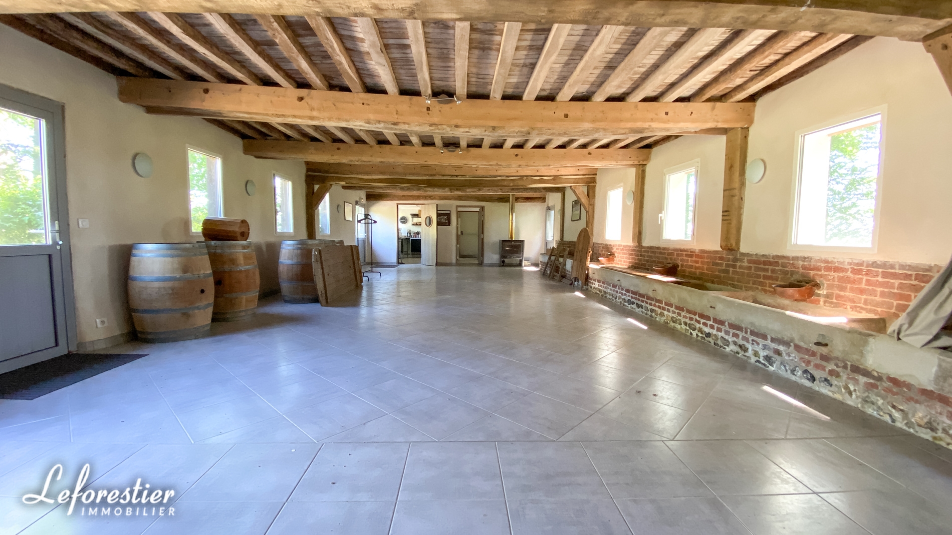 Cette ancienne grange a été totalement restaurée ! Elle abrite désormais une grande salle de réception d’environ 140m2 avec des cuisines professionnelles et des WC aux normes de réception ERP. Les normes incendies sont prises en considération notamment grâce à un système d’alarme.