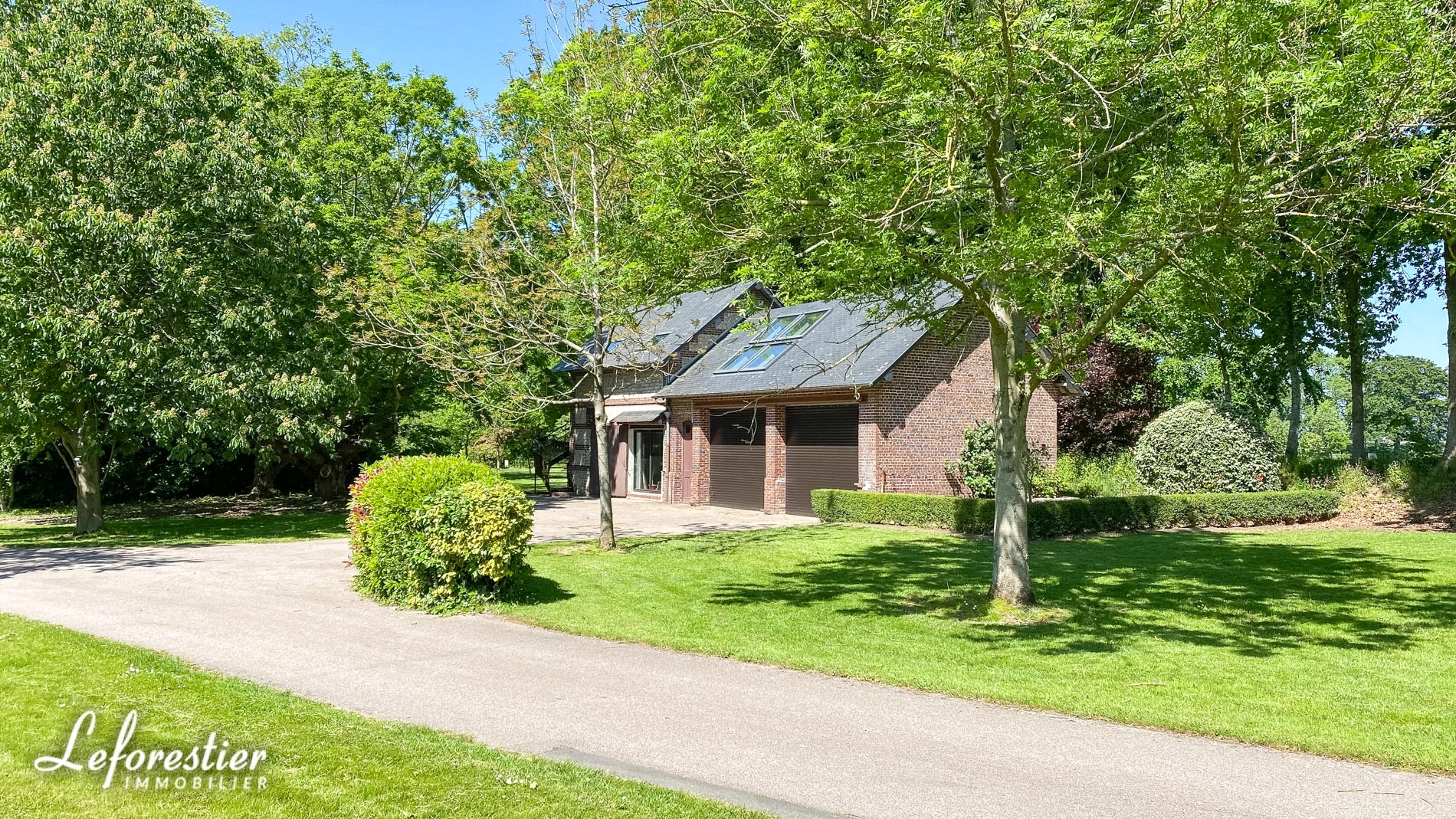 L’accès à la maison se fait en longeant le verger, puis en passant sous le magnifique hêtre pleureur. L’environnement direct de la maison est un jardin paysager composé de nombreuses essences et d’une mare.