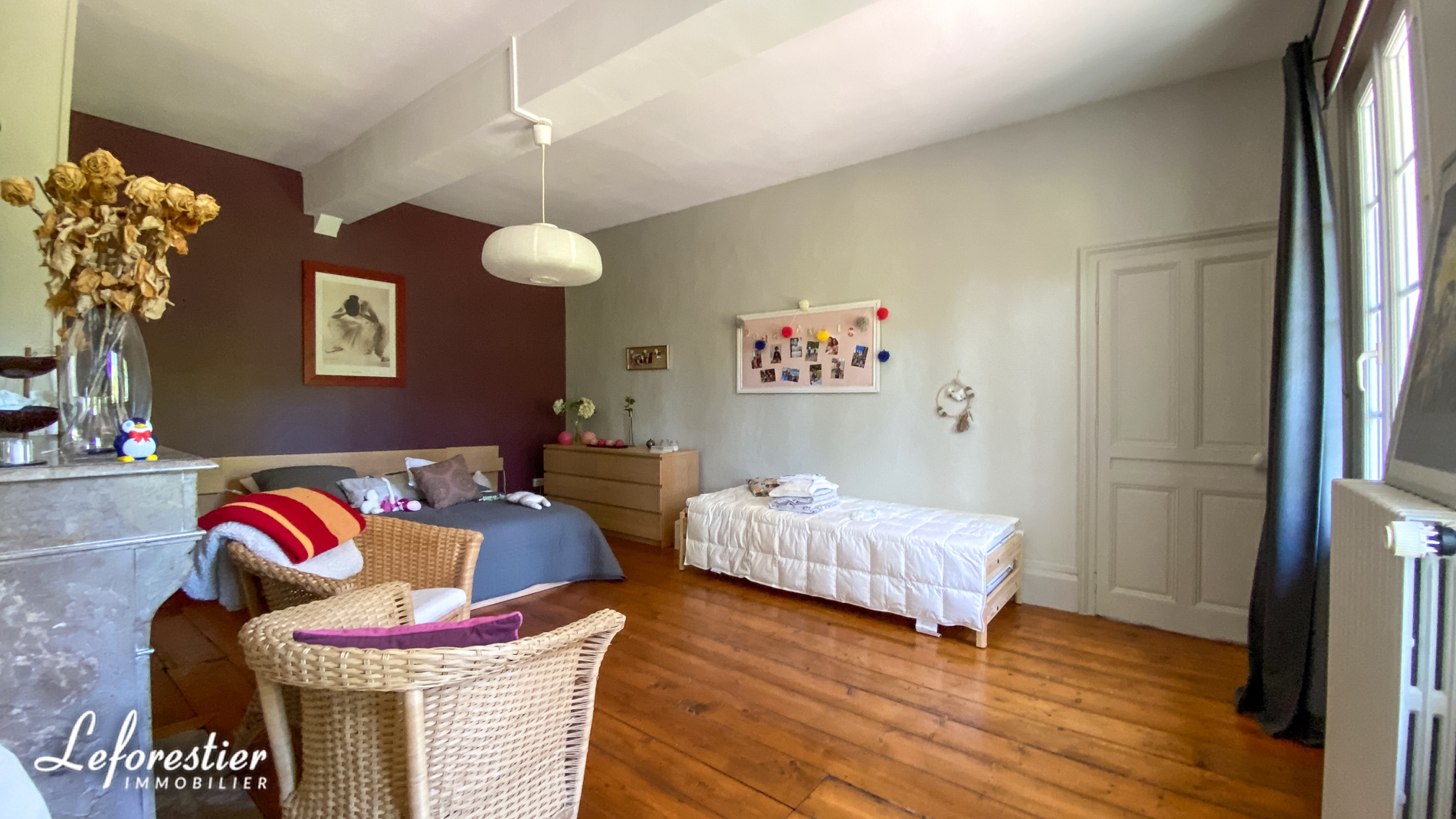 A l’étage, 5 chambres peuvent accueillir toute la famille. Potentiellement, de nombreuses chambres supplémentaires pourraient être aménagées au 2ème étage, autrefois réservé au personnel.