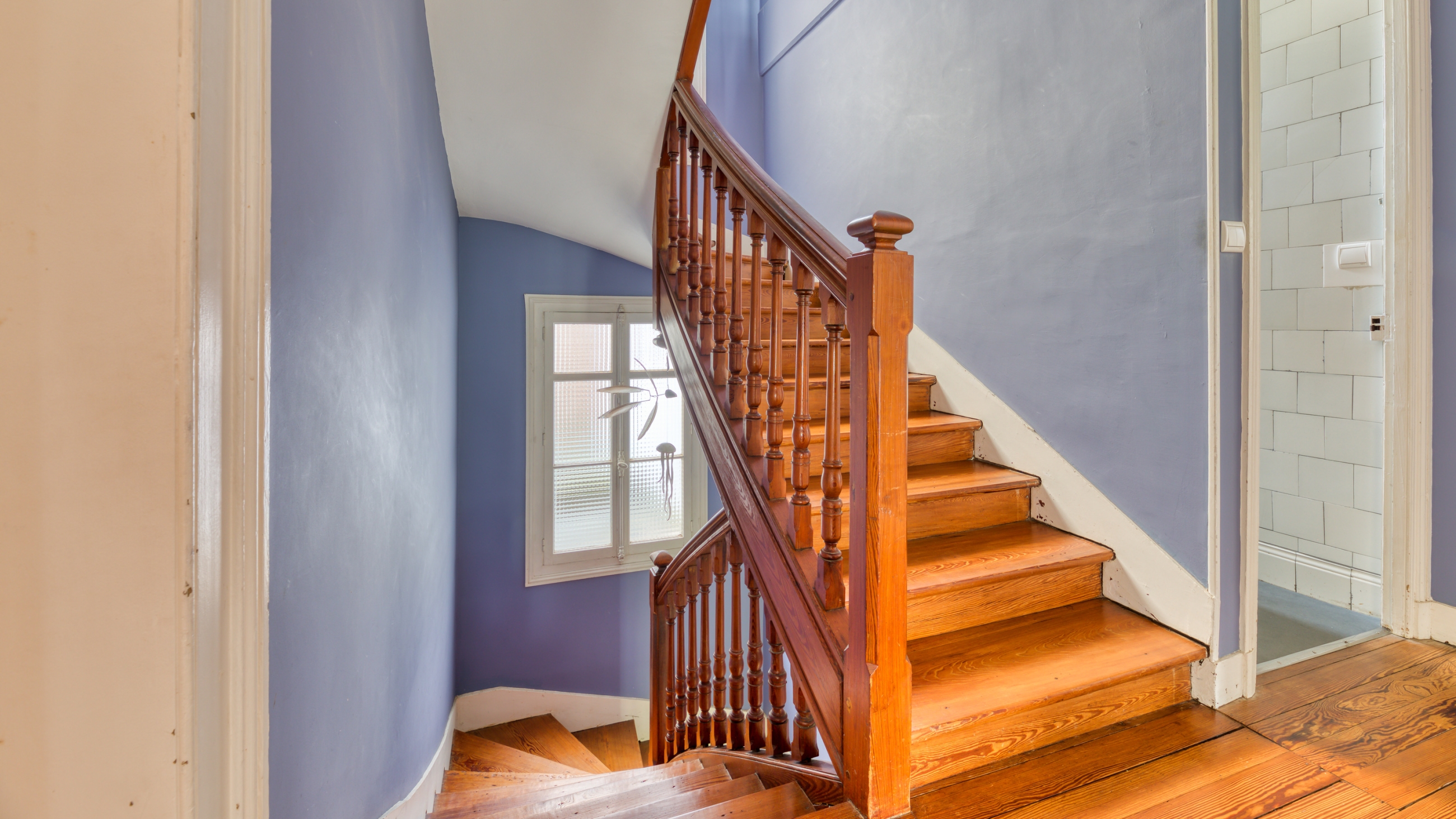 Dans un quartier résidentiel du centre-ville, cette spacieuse maison bourgeoise en bon état avec jardin offre immédiatement un havre de verdure. Les nombreux balcons à chaque niveau et les terrasses en pierre permettent de profiter de la vie calme du quartier.