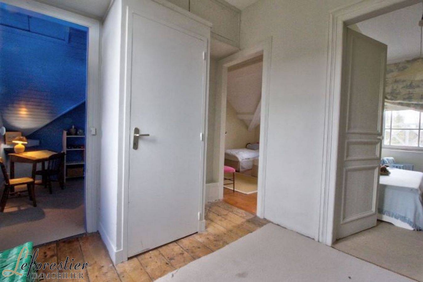 Cette maison de bord de mer à vendre semble bien destinée à devenir une maison de famille en villégiature. En résidence secondaire, les lieux sont propices pour se reposer et se détendre. Le salon séjour est spacieux, ayant conservé ses boiseries et cheminées anciennes ou crépite un doux feu de bois. Par cette belle pièce lumineuse, on accède à la terrasse pour déjeuner ou diner en famille. Après avoir gravi le bel escalier ancien, le palier distribue vers deux grandes chambres et une salle de bains très contemporaine. Au second, trois chambres seront l’univers des enfants avec leur propre salle de bains.
